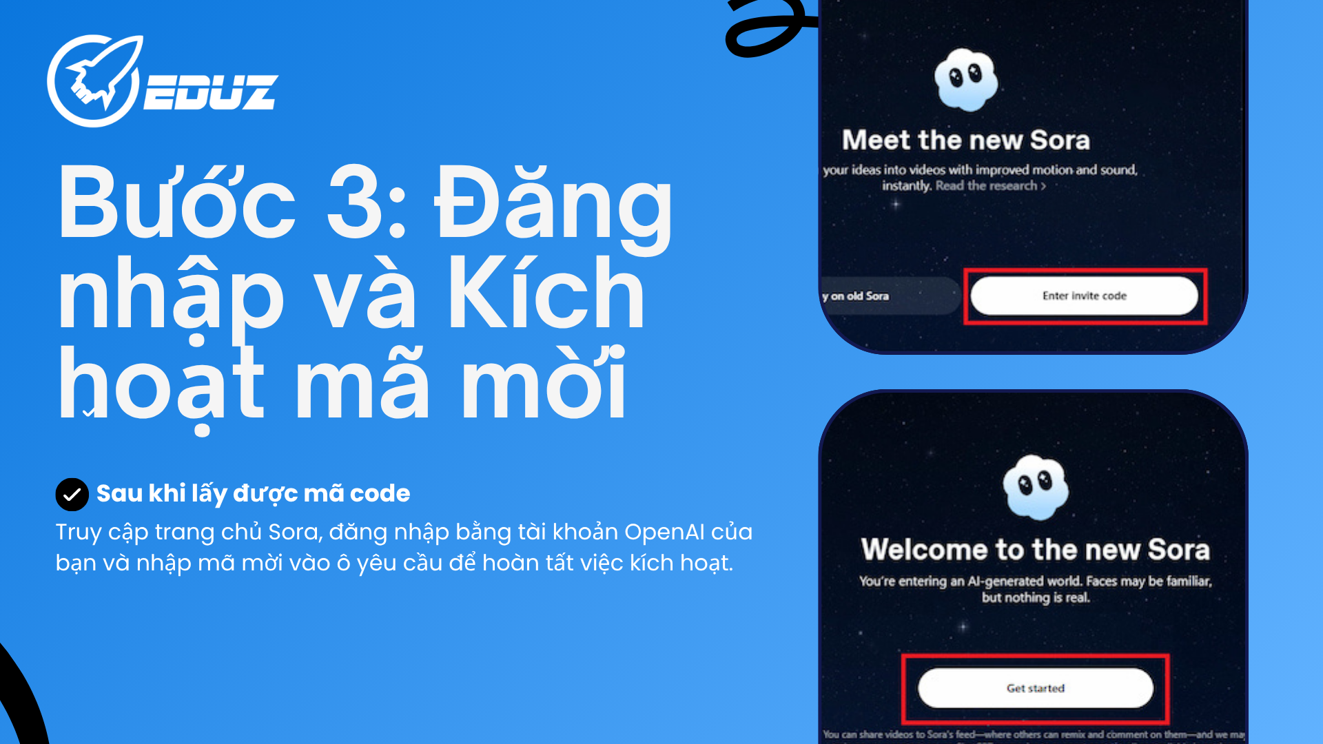 Truy cập trang chủ Sora, đăng nhập bằng tài khoản OpenAI của bạn và nhập mã mời vào ô yêu cầu để hoàn tất việc kích hoạt.
