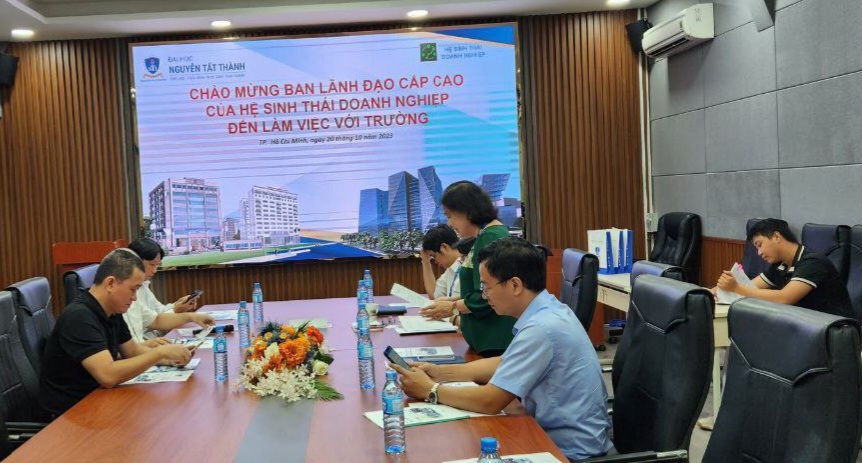 Được sự đón tiếp nồng hậu từ phía nhà Trường, nhóm chuyên gia Hệ Sinh Thái được nghe đại diện Trường Đại Học Nguyễn Tất Thành giới thiệu về sơ lược về Trường, quá trình xây dựng & phát triển cũng như những khó khăn và định hướng phát triển trong thời gian tới. Tại đây, Trường nhấn mạnh về vấn đề chuyển đổi số nhà Trường – Trường nhận định đây là nhiệm vụ quan trọng giúp cải thiện chất lượng giảng dạy, nghiên cứu & quản lý cung cấp cho cộng đồng học tập nhiều cơ hội và tiện ích hơn. Tuy nhiên, thực trạng chuyển đổi số của Trường ở thời điểm hiện tại còn nhiều bất cập trong quá trình chuyển đổi. Do đó Trường đang tìm giải pháp để phát triển toàn diện hơn.