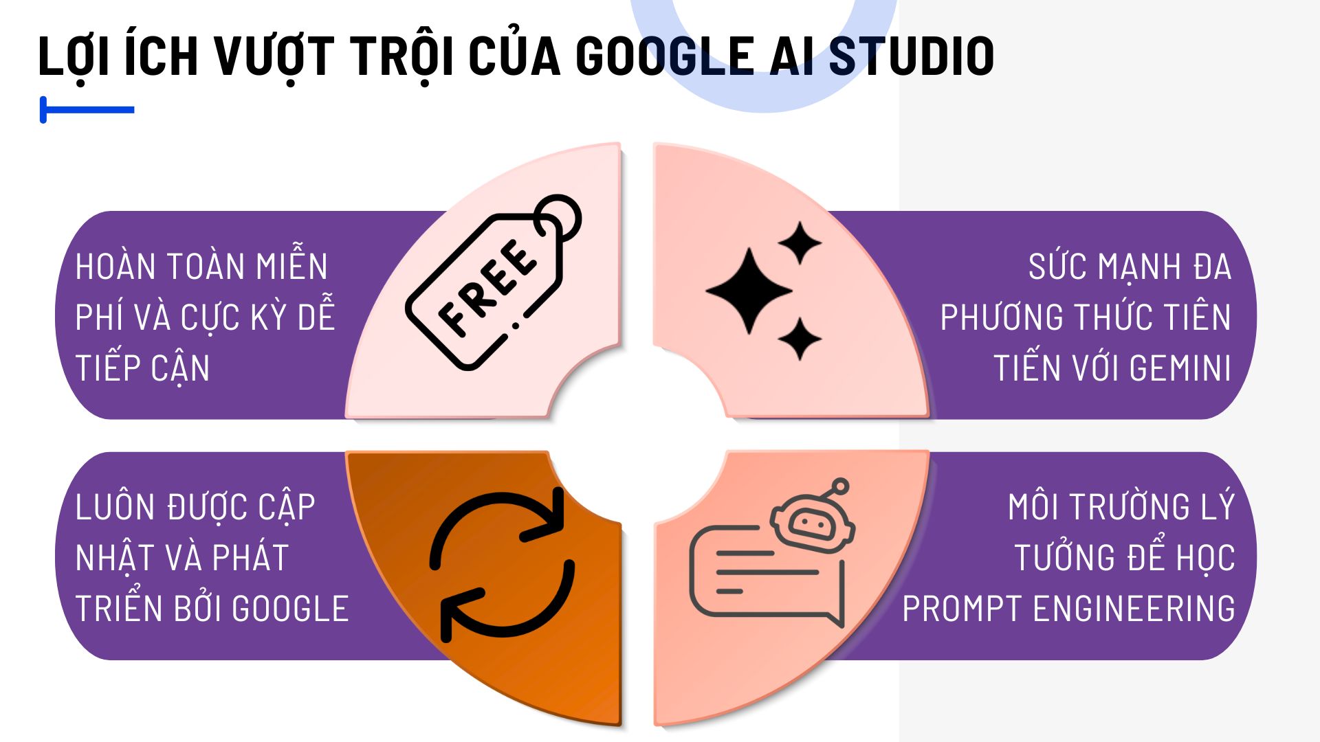 Google AI Studio mang đến nhiều ưu điểm khiến nó trở thành lựa chọn hàng đầu cho việc học tập, thử nghiệm và phát triển các ý tưởng AI.