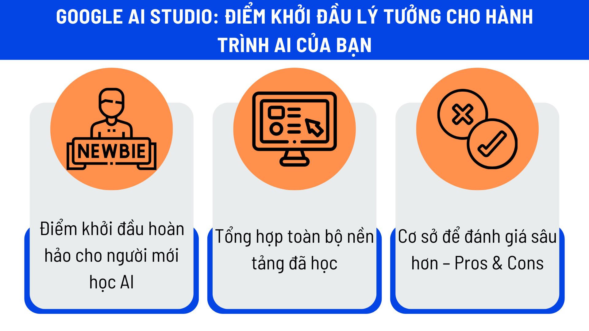 Bạn đã cùng chúng ta trải qua các bước làm quen ban đầu với Google AI Studio: từ việc hiểu tổng quan về công cụ, cách truy cập, khám phá giao diện cho đến việc nắm vững các mô hình Gemini và kỹ thuật viết prompt cơ bản. Giờ đây, để có cái nhìn toàn diện và tự tin hơn trên hành trình khám phá trí tuệ nhân tạo, chúng ta cần đánh giá sâu hơn về những gì Google AI Studio thực sự mang lại. Bài viết này sẽ tập trung phân tích chi tiết những lợi ích vượt trội giúp Google AI Studio trở thành nền tảng lý tưởng cho người mới bắt đầu, đồng thời chỉ ra những giới hạn quan trọng cần biết để bạn có thể sử dụng công cụ này một cách hiệu quả và thực tế nhất trong mọi tình huống.