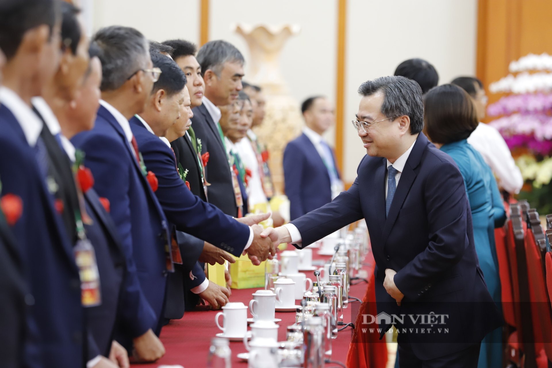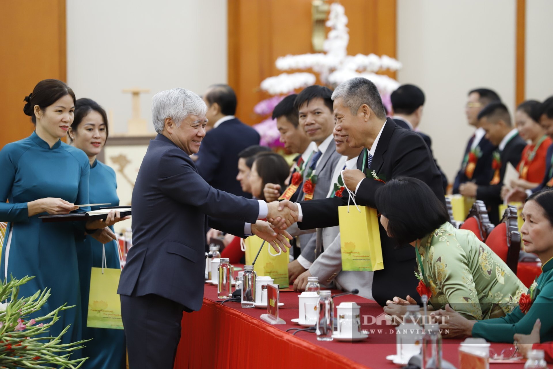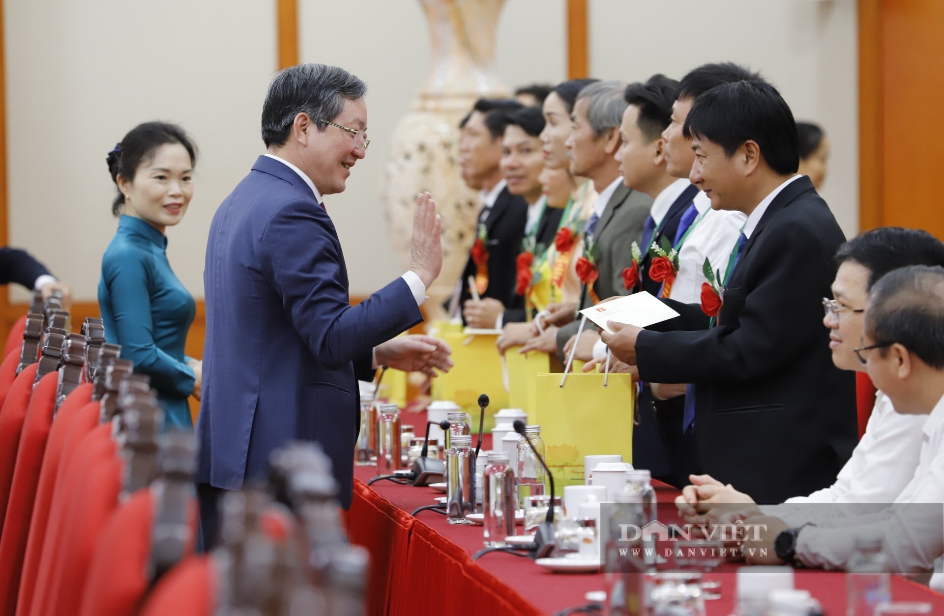 Tham dự buổi tiếp kiến còn có đồng chí Đỗ Văn Chiến, Uỷ viên Bộ Chính trị, Bí thư TƯ Đảng, Chủ tịch Uỷ ban TƯ MTTQ Việt Nam. Trong ảnh, đồng chí Lương Quốc Đoàn, Ủy viên BCH TƯ Đảng, Phó Chủ tịch Ủy ban TƯ MTTQ VN, Bí thư Đảng ủy, Chủ tịch BCH TƯ Hội Nông dân Việt Nam phát biểu tại buổi gặp mặt.