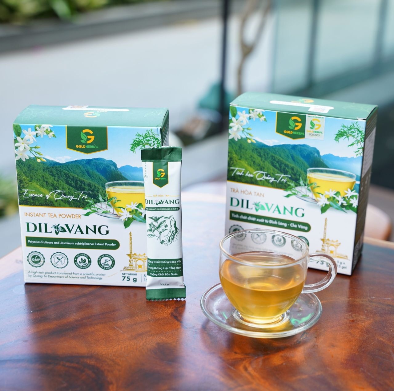 Cao khô hòa tan đinh lăng chè vằng DILVANG hay còn được gọi là trà hòa tan DILVANG, là một sản phẩm trà hòa tan tiện lợi, được chiết xuất từ hai loại dược liệu là đinh lăng và chè vằng từ Quảng Trị. Sản phẩm sử dụng công nghệ hiện đại, dây chuyền sản xuất đạt tiêu chuẩn GMP. Điều này giúp trà giúp giữ lại tối đa dược chất, mang lại nhiều lợi ích cho sức khỏe, lại có thể sử dụng tiện lợi mỗi ngày.