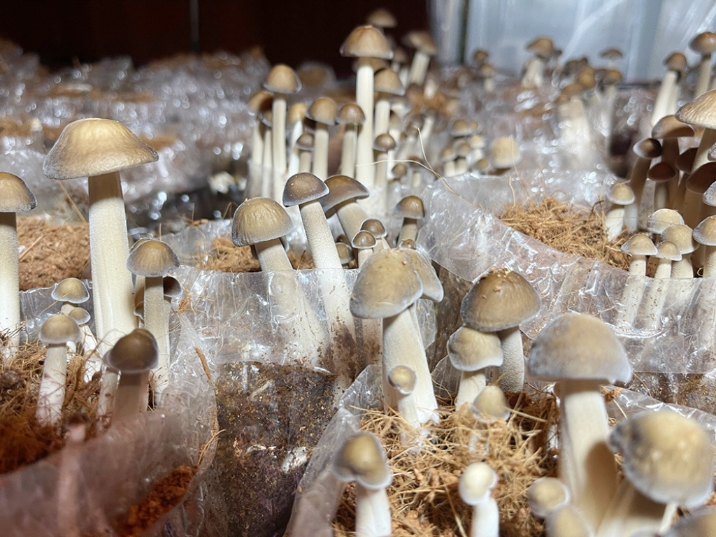 - Organic mushroom cultivation (black termite, oyster, reishi, and cordyceps) under solar rooftops, using substrates made from rice straw, rice bran, and corn bran.
