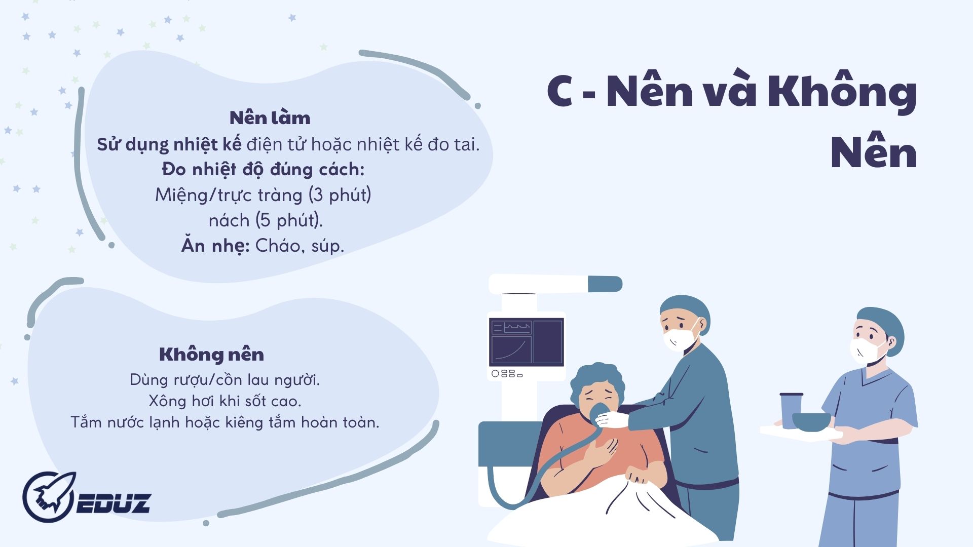 - Đo nhiệt độ ở miệng hoặc trực tràng (3 phút), hoặc kẹp nách (5 phút).