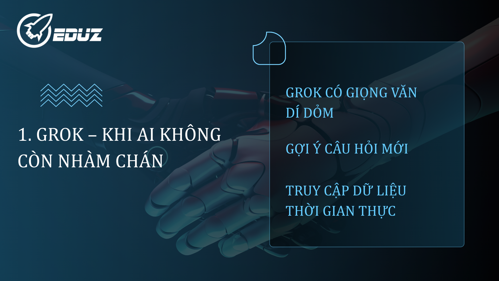 Grok chưa phải là “kẻ thay thế ChatGPT”, nhưng nó đang mở ra một cách tiếp cận mới cho AI: cá tính hơn, tự nhiên hơn, gần gũi hơn với người dùng. Nếu bạn yêu thích tốc độ, sự dí dỏm và muốn thử một trải nghiệm AI khác biệt, Grok xứng đáng là lựa chọn đầu tiên để bạn trải nghiệm.