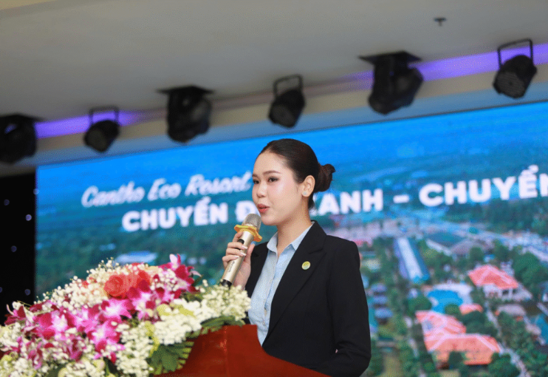 Đại diện tiếng nói từ khối doanh nghiệp lưu trú, bà Trần Thị Mỹ Phụng, Trợ lý Giám đốc Truyền thông – Kinh doanh Cantho Eco Resort, chia sẻ định hướng phát triển gắn với chuyển đổi xanh và chuyển đổi số. Bà cho biết, Cantho Eco Resort xây dựng không gian nghỉ dưỡng hài hòa với thiên nhiên, phát triển đa dạng sản phẩm từ lưu trú, ẩm thực miệt vườn, teambuilding đến farm tour, đồng thời khai thác thế mạnh văn hóa bản địa và sản vật địa phương để tạo trải nghiệm khác biệt cho du khách.