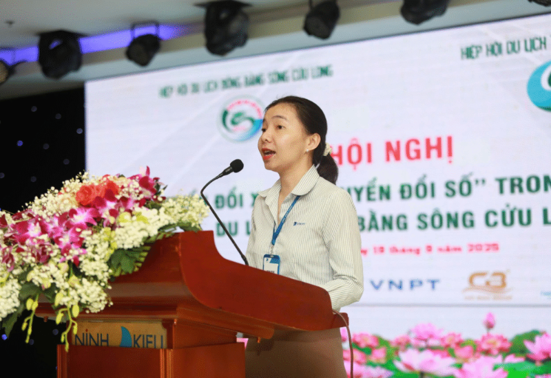 Trong phần tham luận đầu tiên, bà Phạm Thị Cẩm Nhung, Phó Trưởng phòng Giải pháp – Trung tâm CNTT, VNPT Cần Thơ, nhấn mạnh chuyển đổi số là giải pháp then chốt để nâng cao chất lượng phục vụ, thu hút du khách và bảo tồn văn hóa đặc trưng của Đồng bằng sông Cửu Long. Bà nêu ví dụ nhiều địa phương đã triển khai các nền tảng du lịch thông minh như Cần Thơ Tourism, Hau Giang Tourism, hay Cổng thông tin du lịch Sóc Trăng, giúp du khách tra cứu điểm đến, đặt dịch vụ và trải nghiệm bản đồ số 3D, 360 độ.