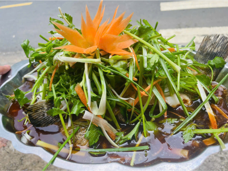 - Cá hấp Hồng Kông – như cá bóng mú hay cá tai tượng, vẫn giữ nguyên chất quê nhưng được "nâng tầm" với cách hấp kiểu Á Đông. Thịt cá trắng, dai ngọt, ướp gừng, hành lá, nước sốt nhẹ nhàng, vừa sang trọng vừa gần gũi.