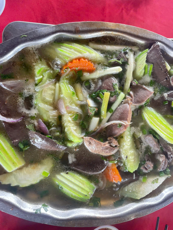 - Lòng vịt xiêm xào mướp: món ăn mộc mạc, giản dị, không cầu kỳ nhưng lại "gây thương nhớ". Lòng vịt giòn giòn, mướp ngọt mềm, ăn kèm cơm trắng thì đúng chất "cơm quê".