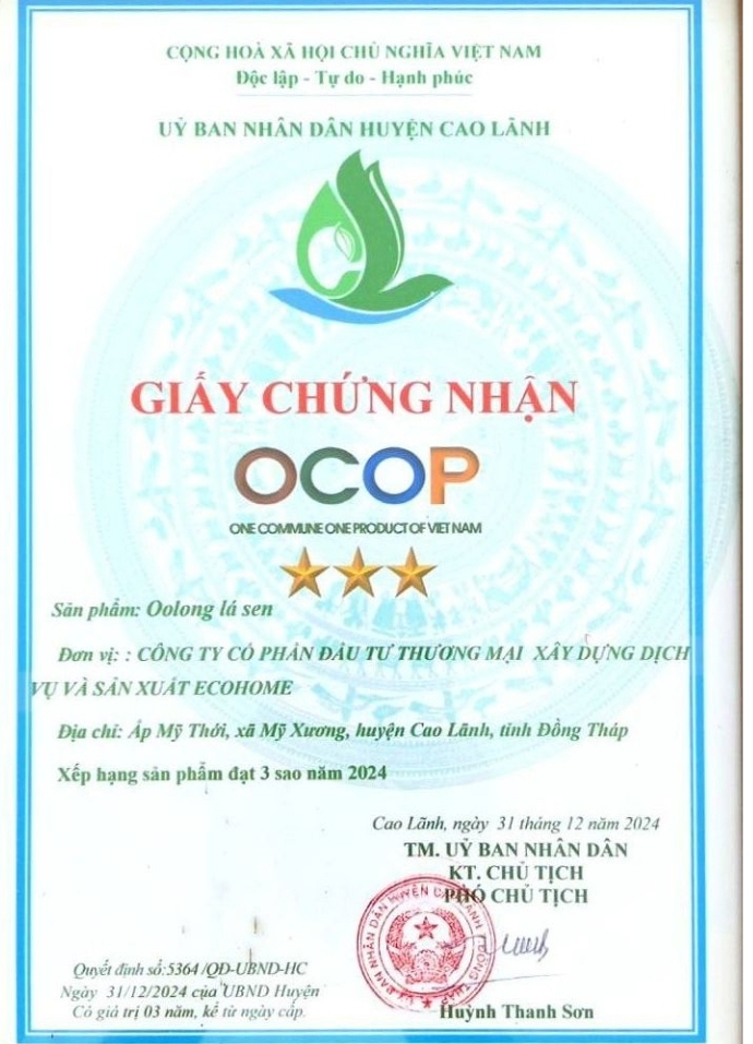 Trà hòa tan Oolong Sen đạt được chứng nhận OCOP 3 sao, đây là minh chứng cho sự nỗ lực của doang nghiệp đã được công nhận. Ngoài dòng trà này, thì bạn còn có thể mua các loại trà khác như oolong sen sữa, oolong sen gừng,... cùng nhiều đặc sản Việt khác.