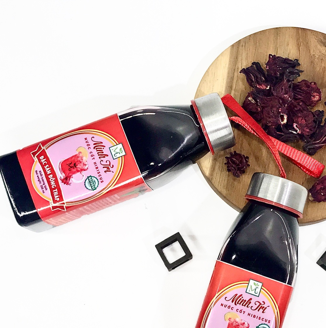 Nước cốt atiso đỏ Minh Trí là một sản phẩm dạng lỏng được chế biến từ hoa atiso đỏ tươi (bụp giấm). Sản phẩm này có màu đỏ tím, đỏ tía hay đỏ ruby rất đẹp mắt, vị chua chua ngọt ngọt đặc trưng, thơm nhẹ nhàng. Bạn có thể dùng nó để pha thành nước giải khát, làm cocktail hoặc làm nguyên liệu tạo màu, thêm vào trái cây...