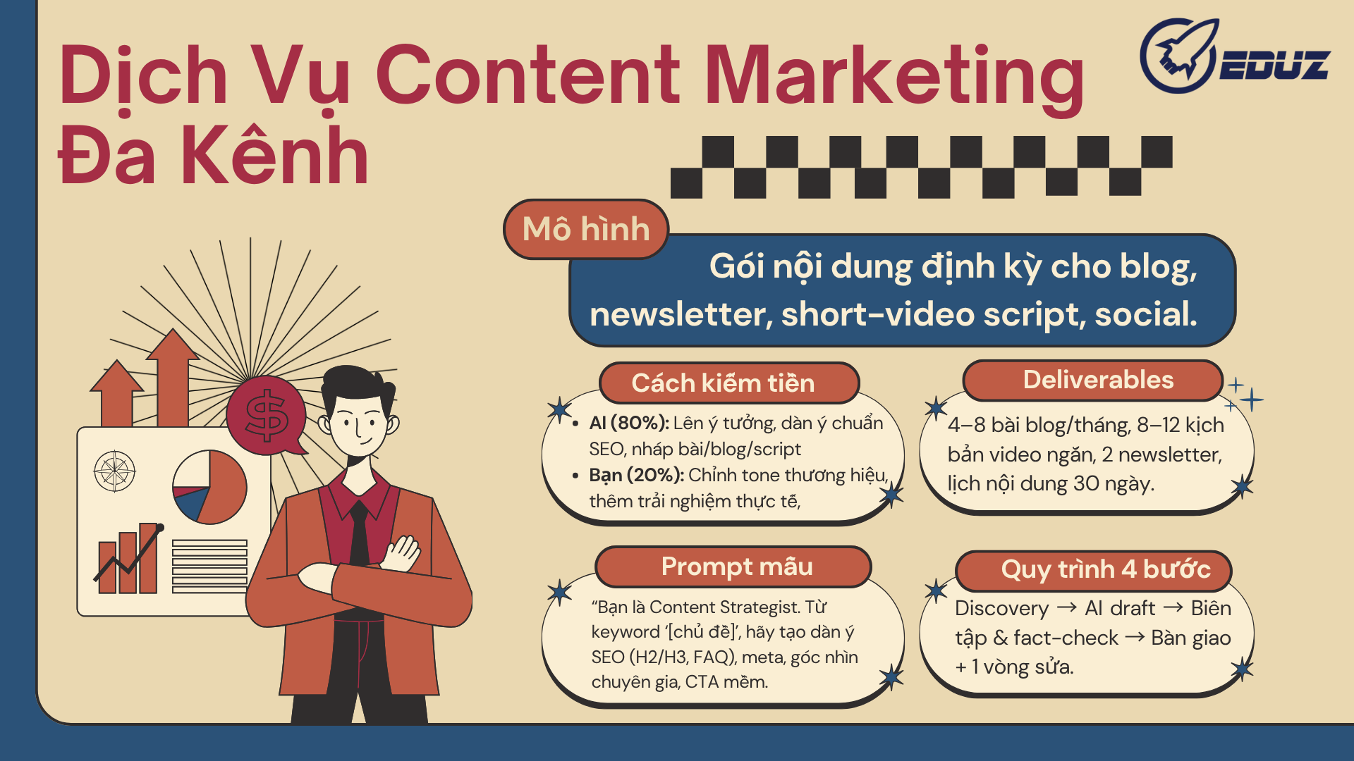 Mô hình: Gói nội dung định kỳ cho blog, newsletter, short-video script, social.