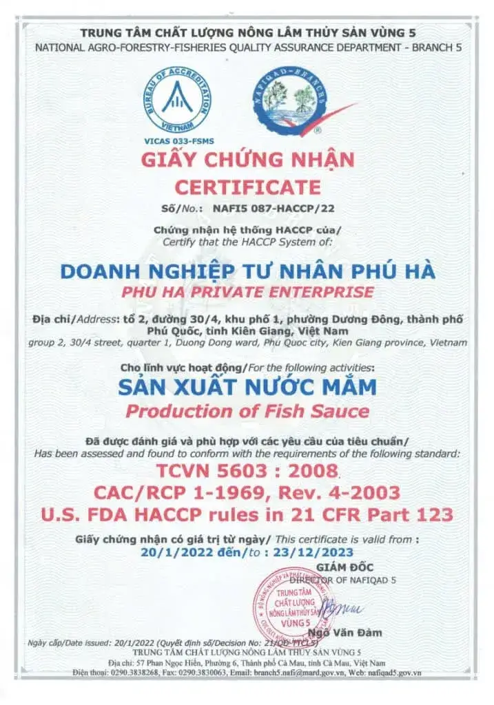 Phu Ha Foods is a pioneering enterprise officially certified to supply Phu Quoc PDO (Protected Designation of Origin) fish sauce, strictly complying with European Union standards.