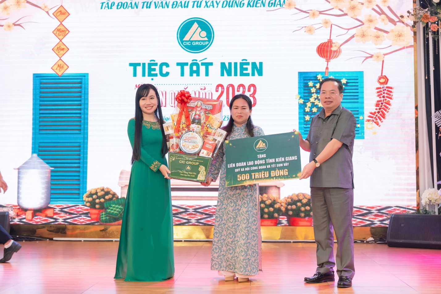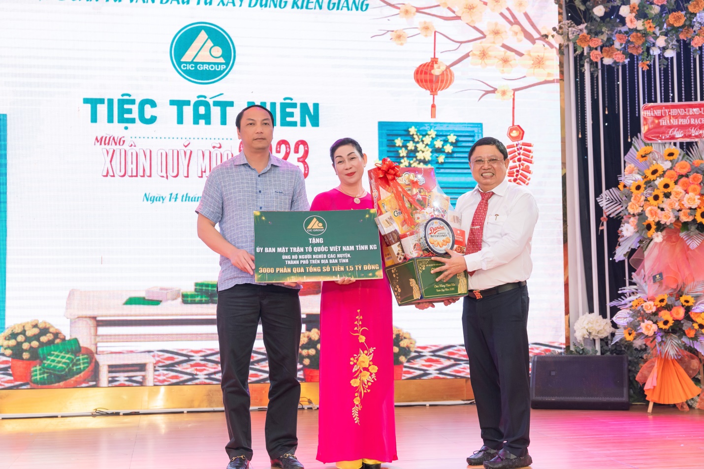Ngày 14-1, Công ty Cổ phần Tập đoàn Tư vấn Đầu tư Xây dựng Kiên Giang (CIC Group) tổ chức tiệc tất niên, khen thưởng cho các cá nhân, tập thể của CIC Group có thành tích xuất sắc trong năm 2022 và trao tặng gần 2,5 tỷ đồng cho các đơn vị, địa phương trong tỉnh nhân dịp Tết Nguyên đán Quý Mão 2023. Đồng chí Mai Văn Huỳnh - Phó Bí thư Thường trực Tỉnh ủy, Chủ tịch Hội đồng nhân dân tỉnh; đồng chí Lâm Minh Thành - Phó Bí thư Tỉnh ủy, Chủ tịch Ủy ban nhân dân tỉnh, lãnh đạo các sở, ban, ngành tỉnh, lãnh đạo các huyện, thành phố trong tỉnh, nguyên lãnh đạo tỉnh qua các thời kỳ và các đối tác thân thiết tham dự.