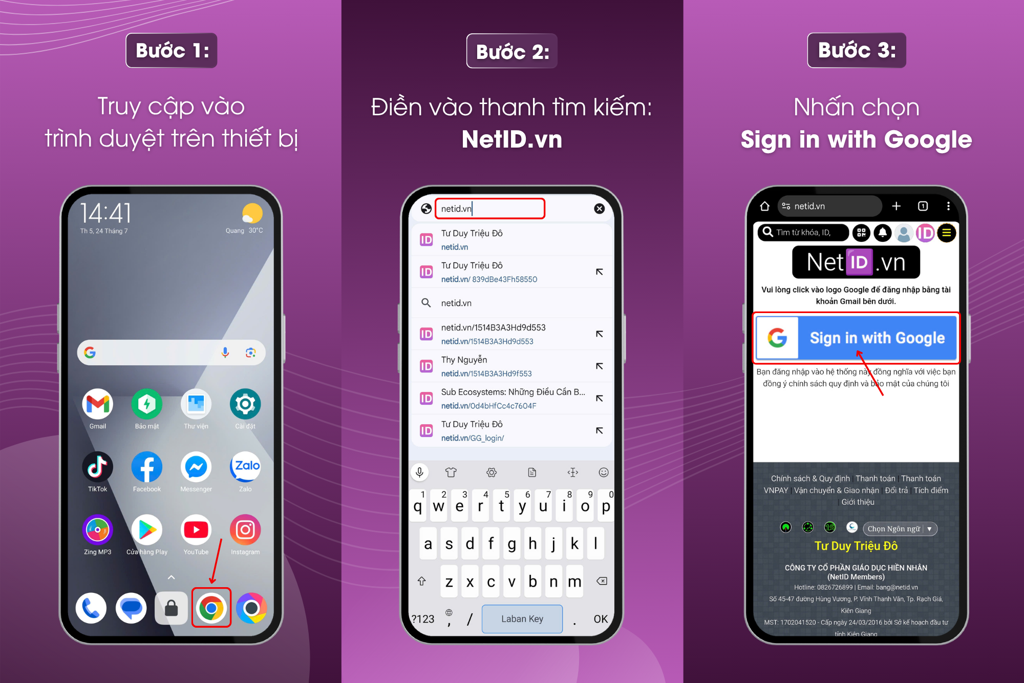 Bước 2: Điền vào ô tìm kiếm NetID.vn
