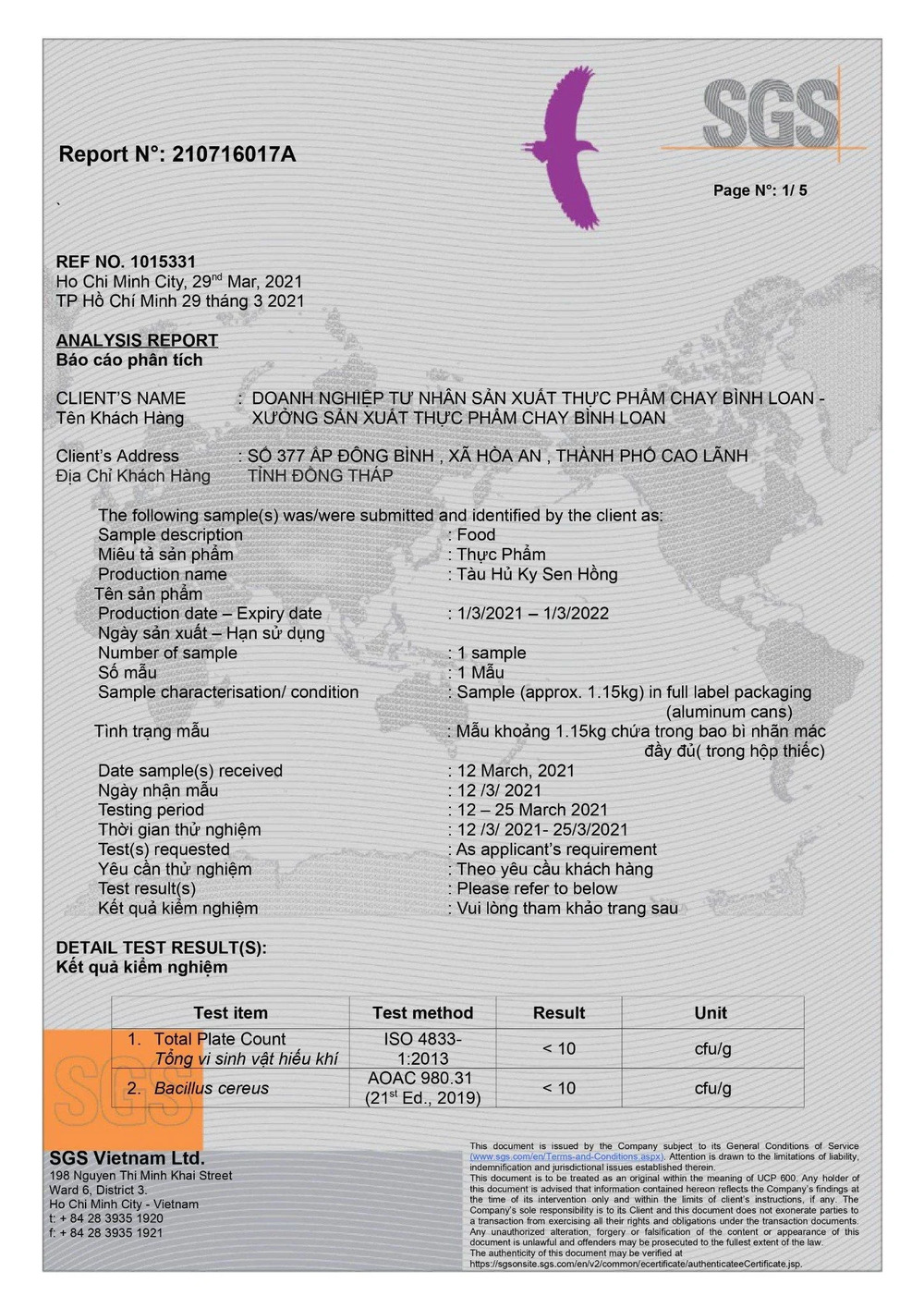 Bộ giấy tờ - chứng nhận của sản phẩm Tàu Hủ Ky Sen Hồng 0