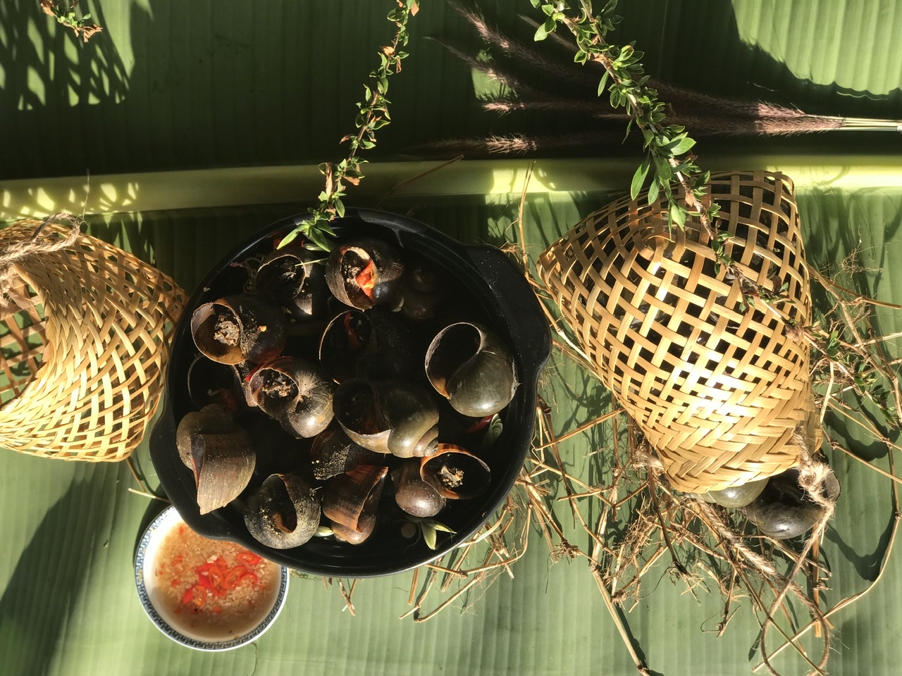 Ốc gác bếp hấp sả ngon hơn khi chấm cùng với nước mắm gừng, hoặc nước mắm chua ngọt