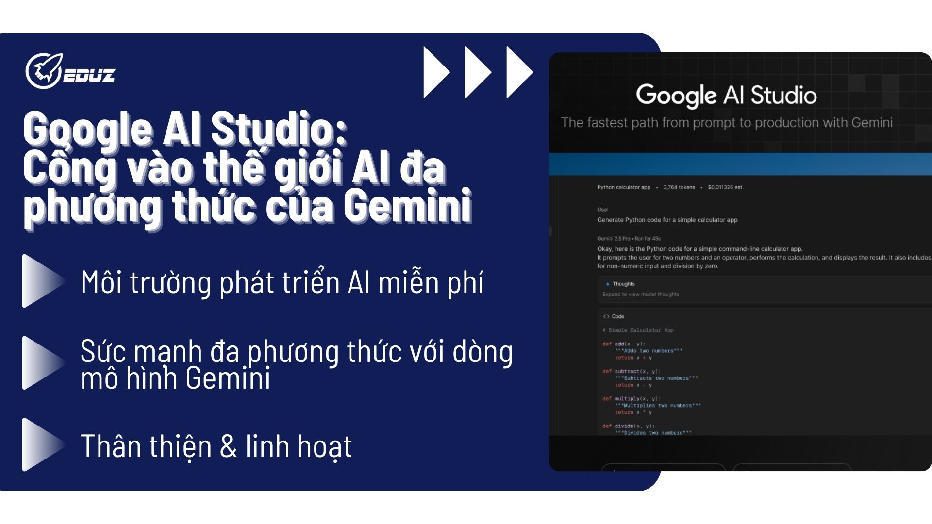Google AI Studio đóng vai trò là "cầu nối" trực tiếp, giúp bạn khai thác khả năng đa phương thức vượt trội này của Gemini để biến các ý tưởng sáng tạo thành hiện thực.