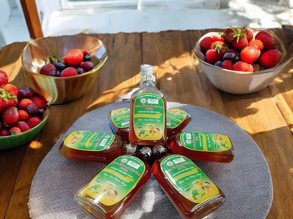 Sản phẩm đặc trưng của chanh không hạt Mỹ Long kết hợp với mật ong tự nhiên, cô đặc.
