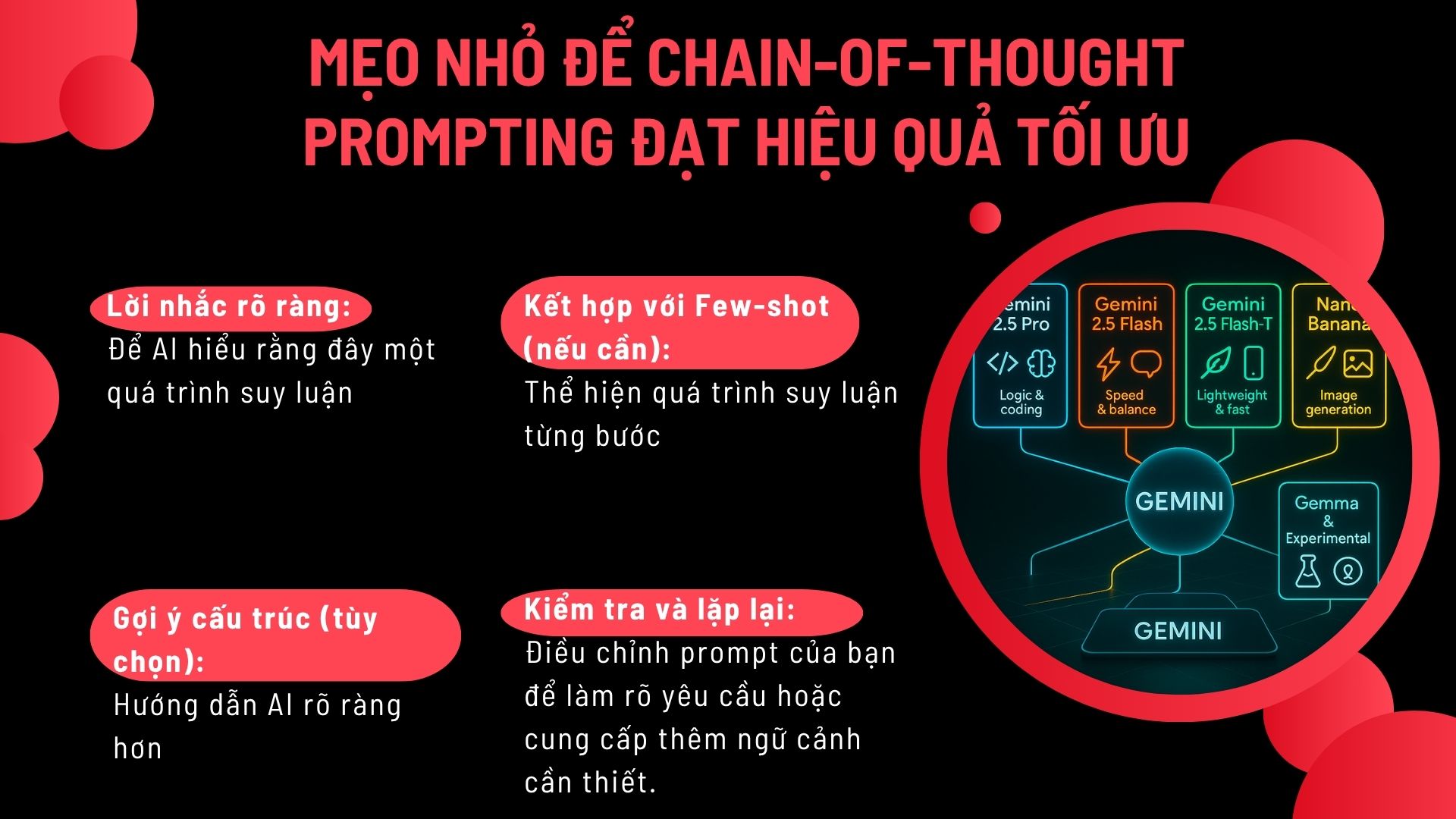 Để kỹ thuật Chain-of-Thought Prompting mang lại kết quả tốt nhất và giúp bạn tối đa hóa hiệu quả khi làm việc với AI Studio, hãy ghi nhớ những mẹo nhỏ sau đây.