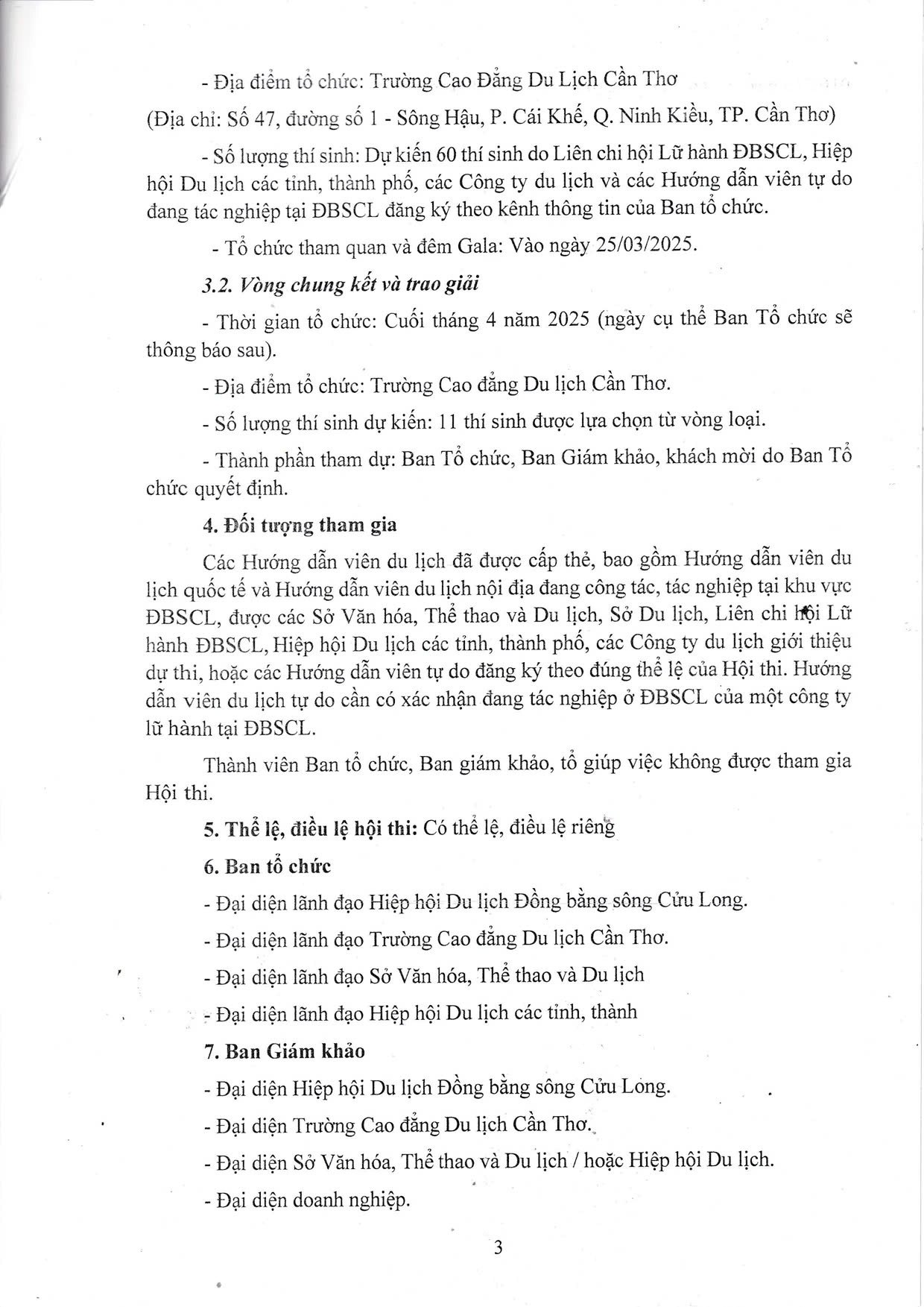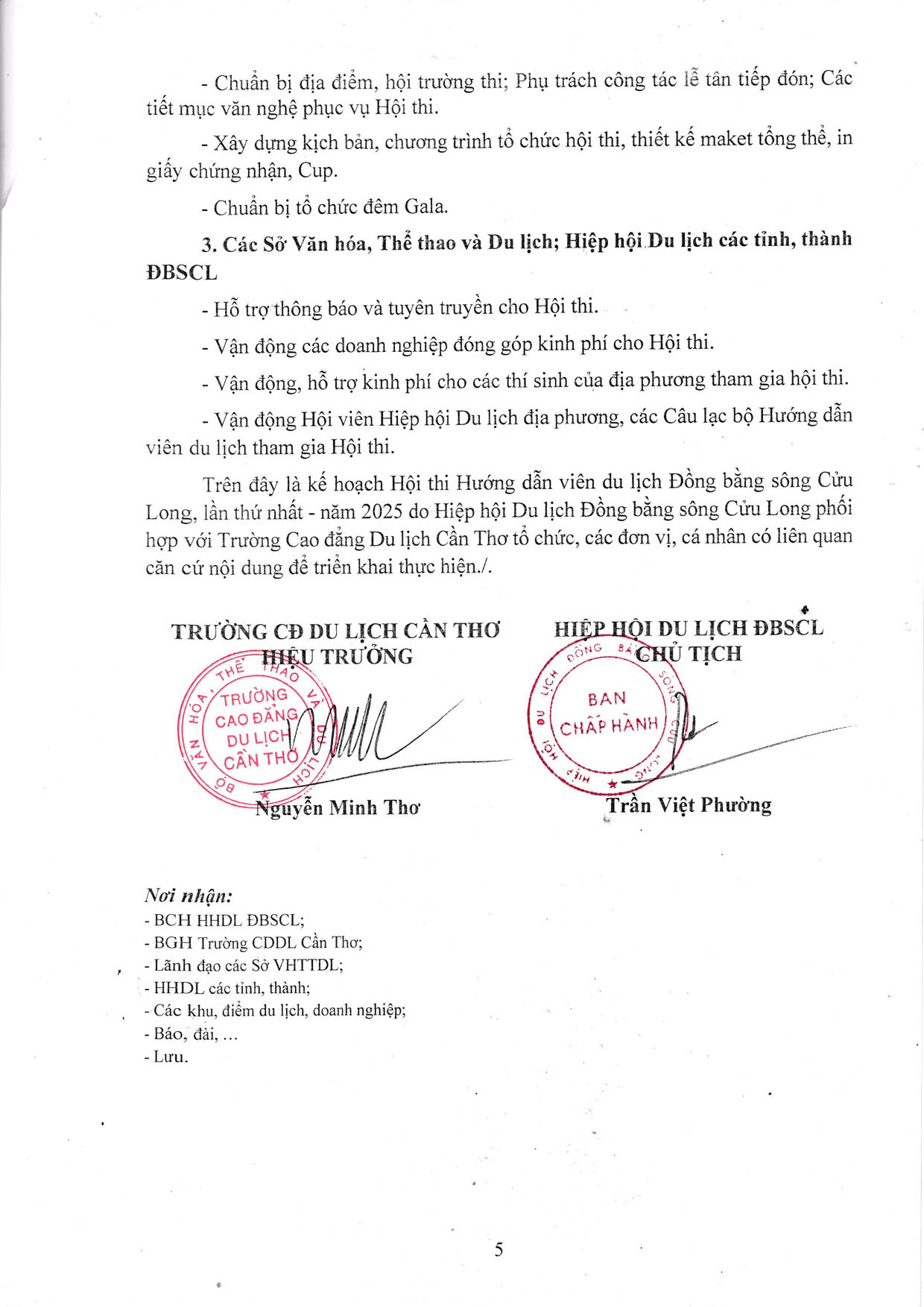 Kê Hoach Phôi Hơp Tô Chưc Hôi Thi Hương Dân Viên Du Lich ĐBSCL Lân Thư Nhât Năm 2025
