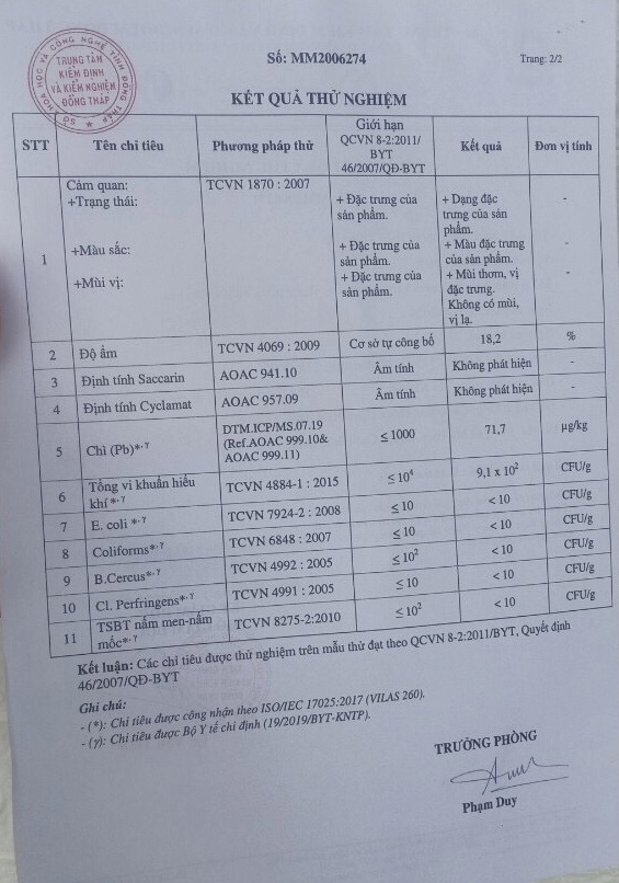 Phiếu Xét Nghiệm Mứt Chôm Chôm