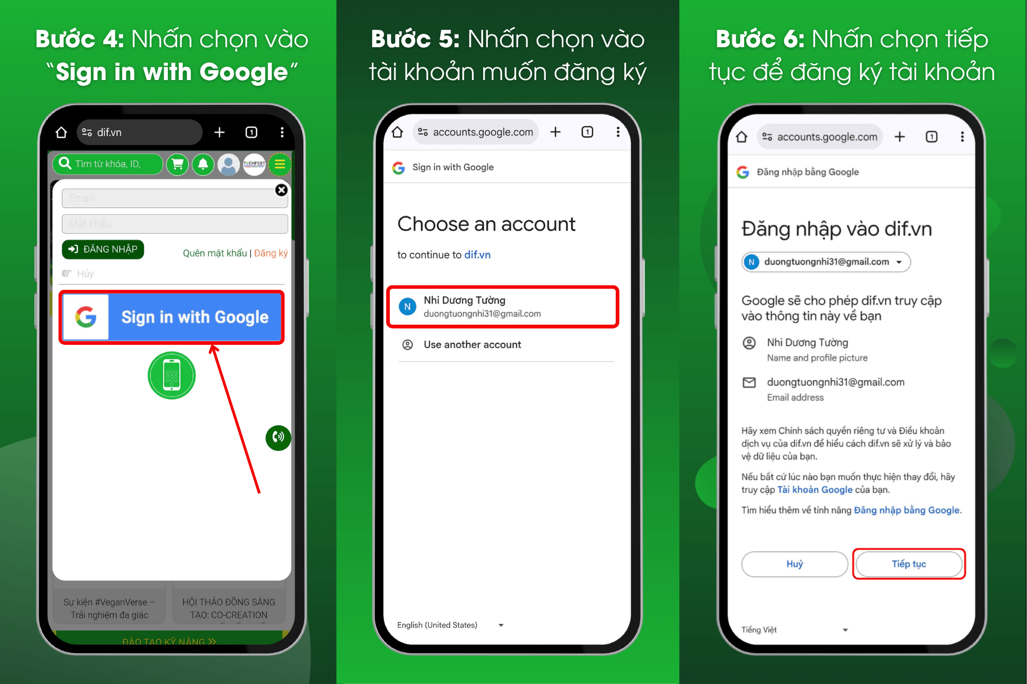 Bước 5: Chọn 1 tài khoản Google mà bạn muốn đăng ký/ đăng nhập