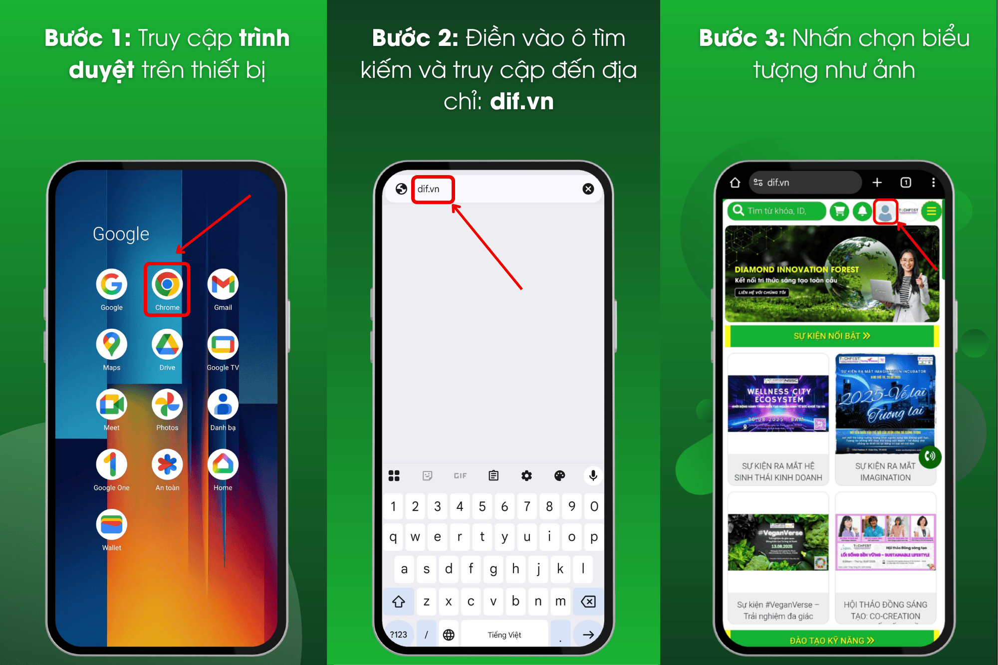 Bước 2: Nhập vào ô tìm kiếm từ khóa: dif.vn và truy cập vào website