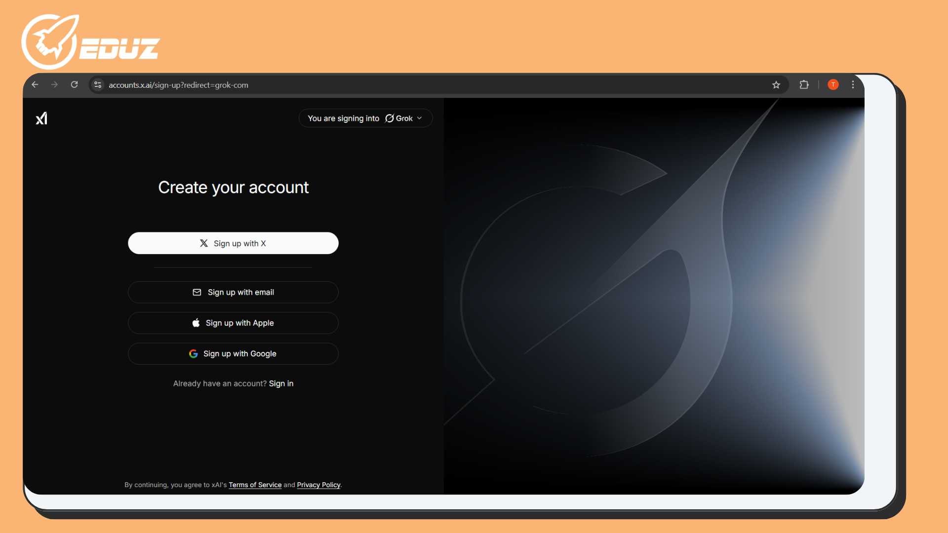 - Cũng giống như bên X, Grok vẫn hộ trợ bạn việc đăng ký với tài khoản X, Google hay là Apple, nếu chưa có tài khoản X thì bạn vẫn có thể thực hiện các bước như trên để tạo tài khoản.