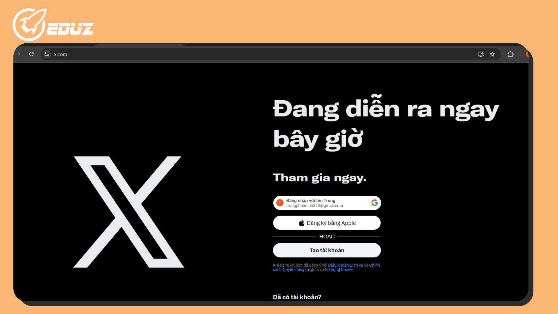Tôi truy cập x.com trên trình duyệt và đăng nhập tài khoản X như bình thường. Nếu bạn chưa có tài khoản thì hãy thực hiện một vài bước sau để tạo tài khoản: