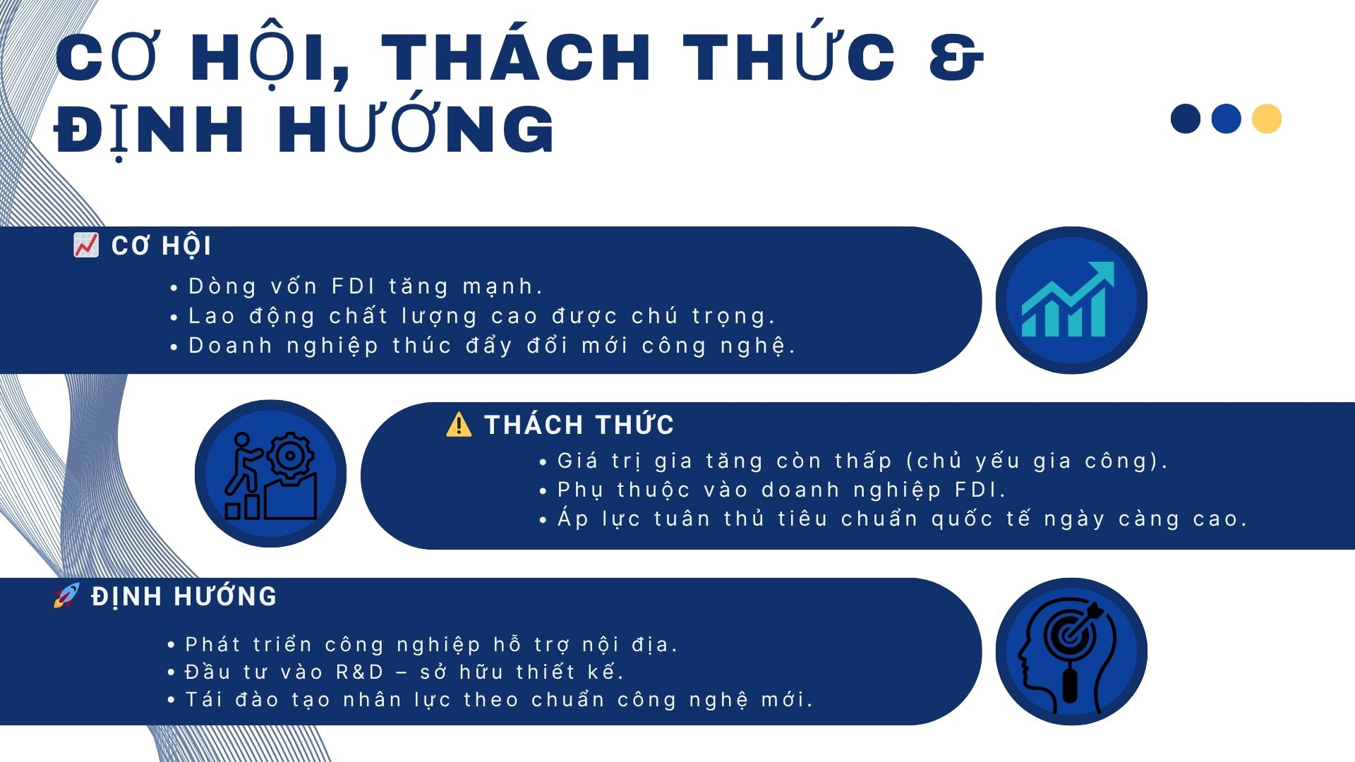 - Đầu tư vào R&D và công nghệ cao: Từng bước chuyển đổi từ “sản xuất theo thiết kế nước ngoài” sang “sáng tạo và sở hữu thiết kế”.