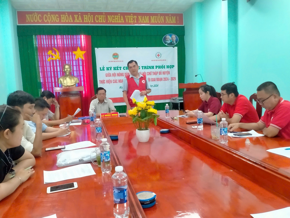 Hội Chữ thập huyện phối hợp chặt chẽ với Hội Nông dân huyện triển khai thực hiện các Phong trào, các cuộc vận động như: Vận động Hiến máu tình nguyện, Phong trào “Tết Nhân ái”; “Tháng Nhân đạo”; Cuộc vận động “Toàn dân đoàn kết xây dựng nông thôn mới, đô thị văn minh”, Cuộc vận động “Mỗi tổ chức, mỗi cá nhân gắn với một địa chỉ nhân đạo”, Chương trình “An toàn cho ngư dân khó khăn” các chương trình an sinh xã hội do hai bên phát động.