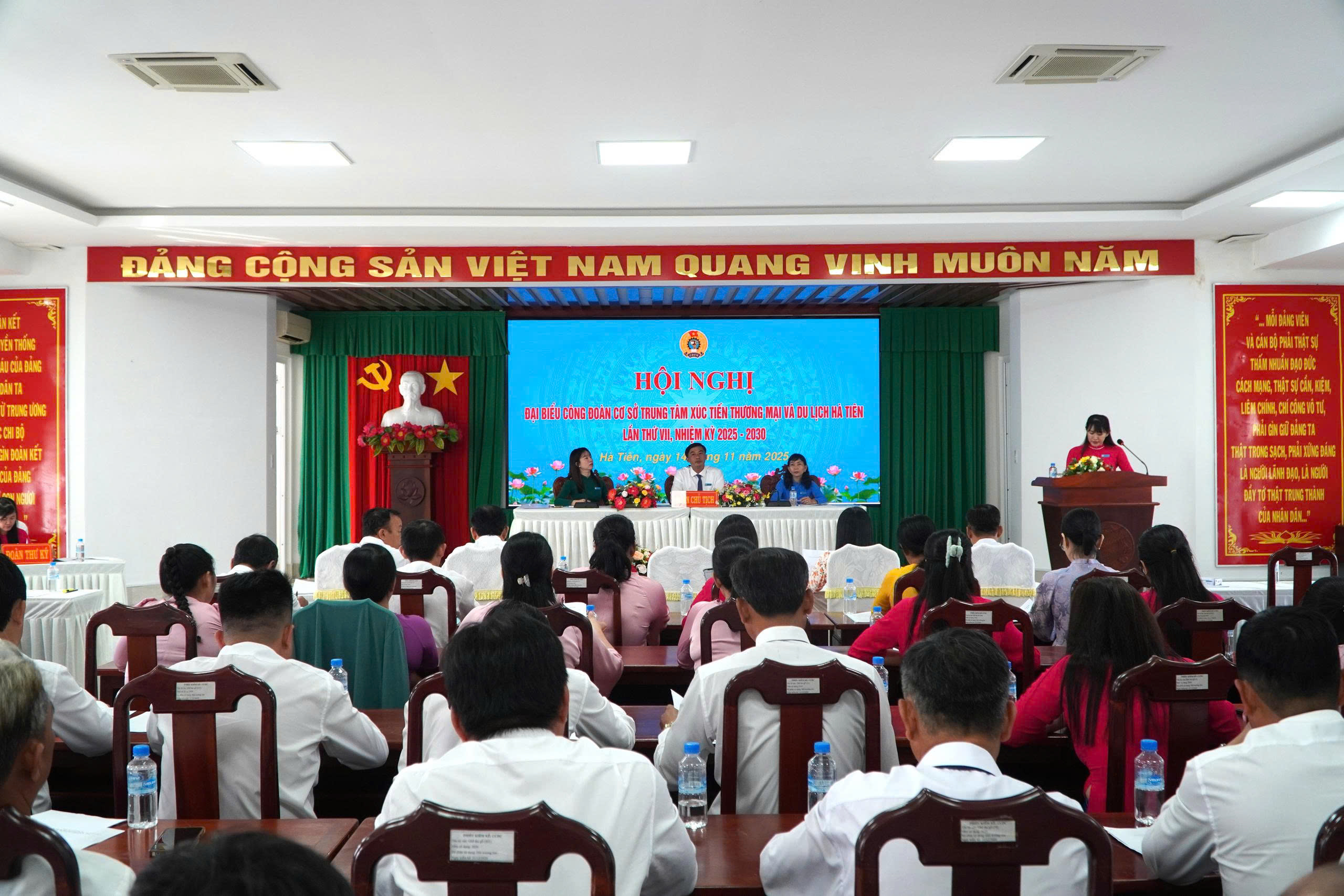 Chiều ngày 14/11, Công đoàn cơ sở Trung tâm Xúc tiến Thương mại và Du lịch Hà Tiên tổ chức hội nghị Công đoàn khóa VII, nhiệm kỳ 2025 - 2030. Dự hội nghị có đồng chí Nguyễn Thị Mộng Quyên - Bí thư chi bộ, Giám đốc Trung tâm; các đ/c trong Ban Chấp hành Công đoàn; Ban Giám đốc Trung tâm, cùng với 40 công đoàn viên.
