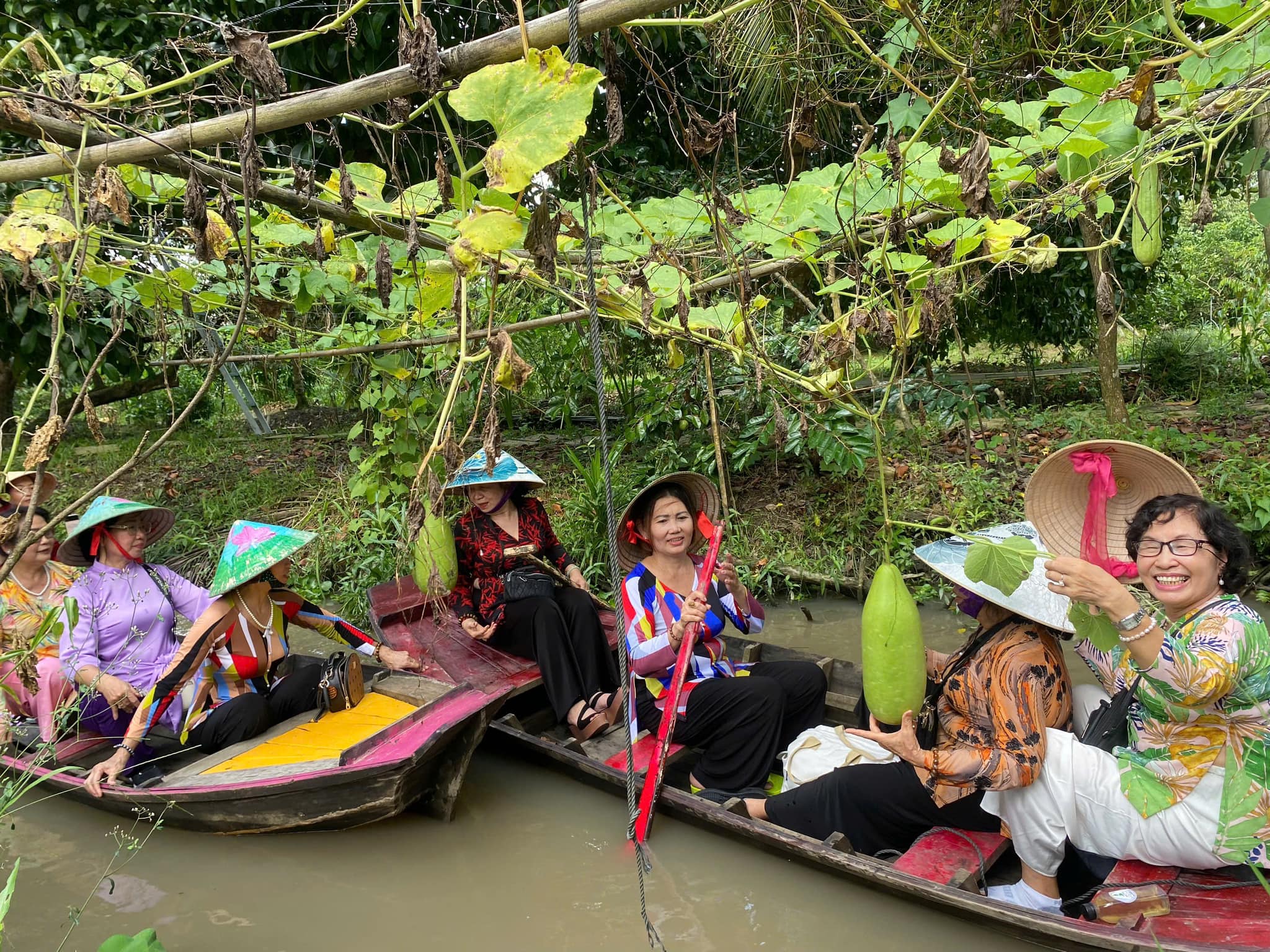 - Ngồi xuồng ngắm cảnh hoàng hôn buông xuống, mặt nước lấp lánh ánh vàng, tạo nên một khung cảnh bình yên khó quên.
