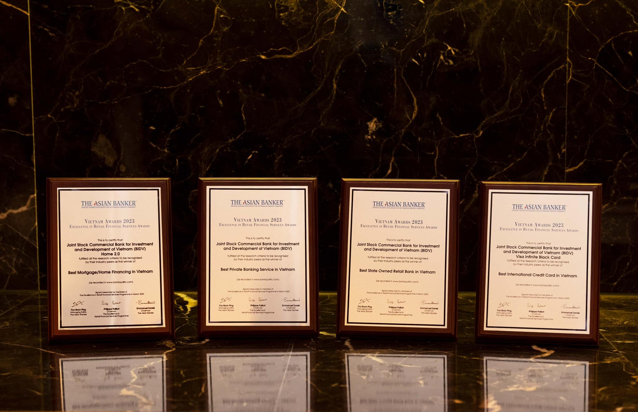 Trong hoạt động chuyên môn, BIDV cũng được nhiều tổ chức trong nước và quốc tế uy tín ghi nhận bằng nhiều danh hiệu, giải thưởng trong các lĩnh vực nổi bật như: phát triển thương hiệu, công nghệ thông tin, phát triển ngân hàng bán lẻ, kinh doanh vốn và tiền tệ, thanh toán quốc tế, hội nhập kinh tế quốc tế, sử dụng lao động, an sinh xã hội...