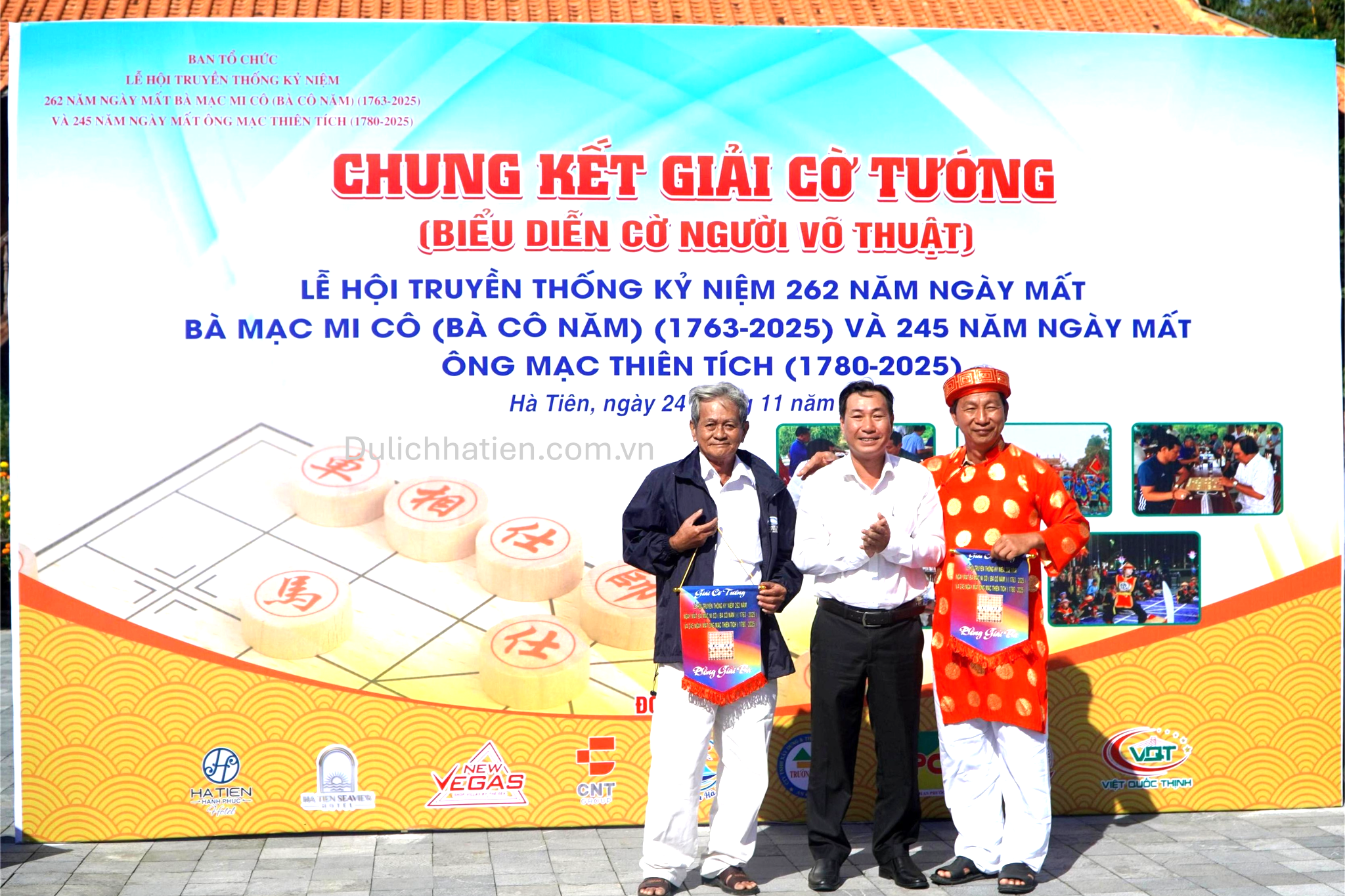 Sáng 24/11, tại Nhà lưu niệm Tao đàn Chiêu Anh Các, phường Hà Tiên đã diễn ra trận chung kết Giải cờ tướng (cờ người võ thuật) giữa hai kỳ thủ Huỳnh Văn Đăng, khu phố I-Tô Châu và Bàng Ngọc Son, khu phố I-Đông Hồ. Đây là hoạt động được mong chờ nhất trong khuôn khổ lễ hội truyền thống kỷ niệm 262 năm ngày mất Bà Mạc Mi Cô và 245 năm ngày mất Ông Mạc Thiên Tích, thu hút đông đảo người dân và du khách đến theo dõi.