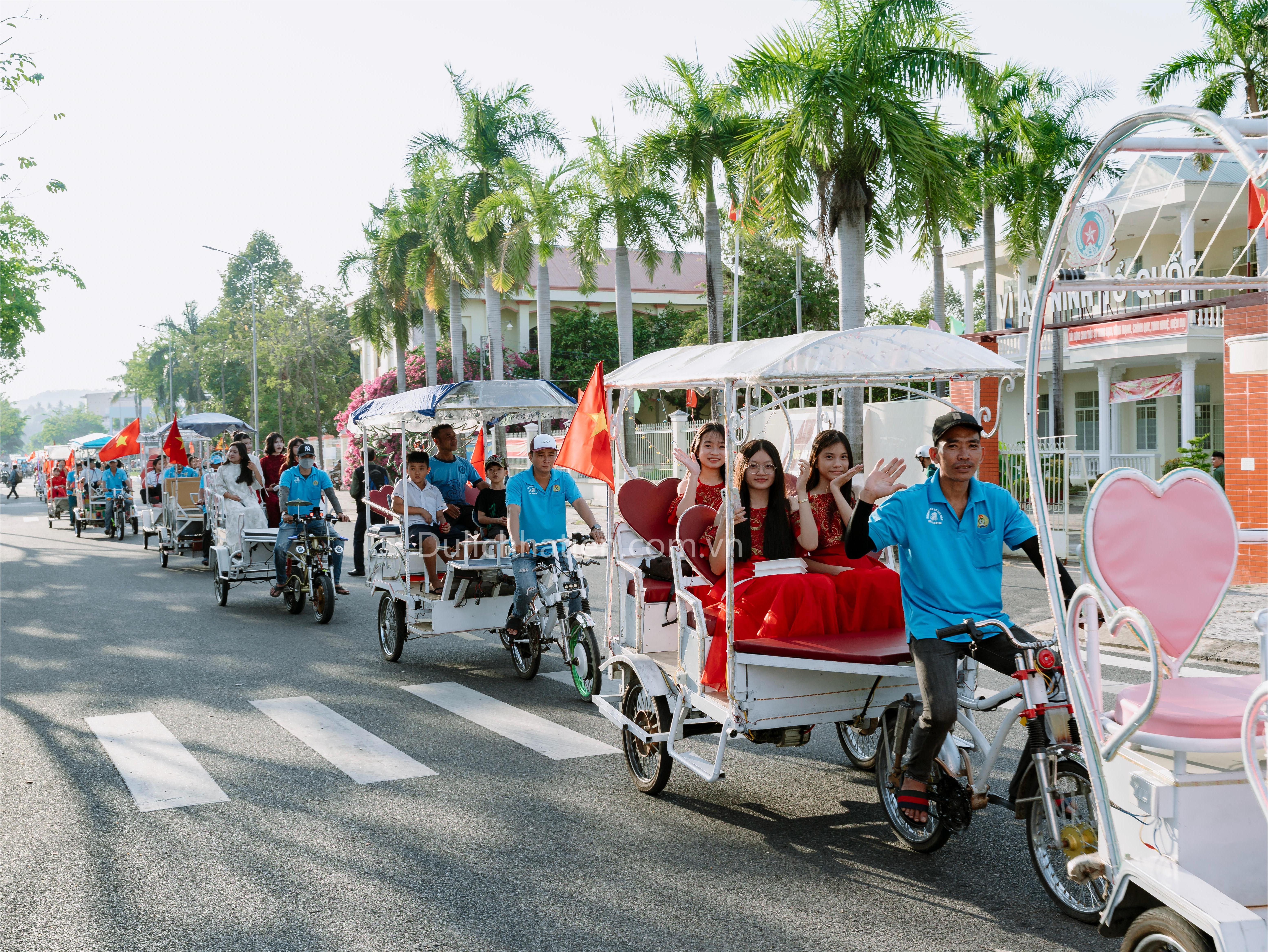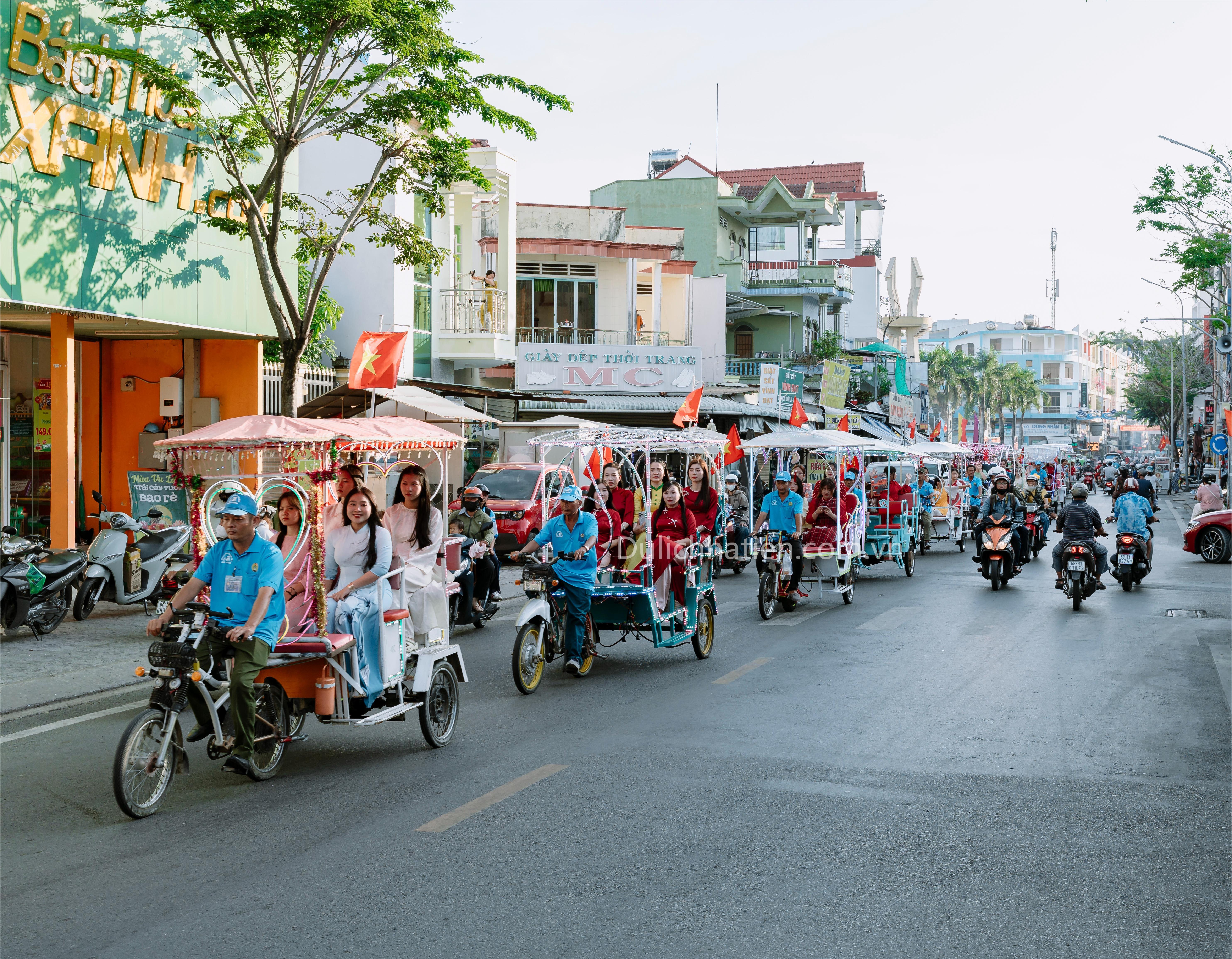 Tham gia diễu hành có 60 chiếc xe lôi. Trên mỗi xe là hình ảnh duyên dáng trong trang phục áo dài truyền thống của giáo viên cùng các em học sinh. Hình ảnh giản dị, gần gũi đã tạo nên sắc thái văn hóa đặc trưng, góp phần tái hiện đời sống sinh hoạt và nét đẹp truyền thống của vùng đất Hà Tiên.