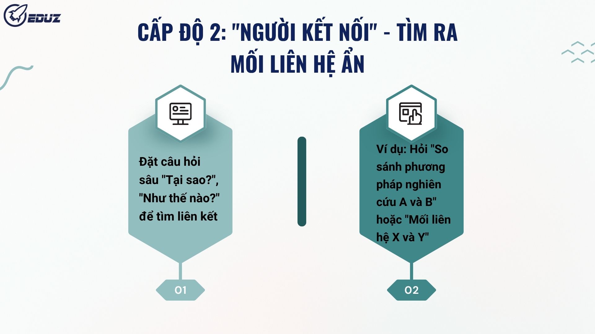Ở cấp độ này, bạn bắt đầu tìm kiếm các mối liên hệ sâu hơn bằng những câu hỏi "Tại sao?", "Như thế nào?".