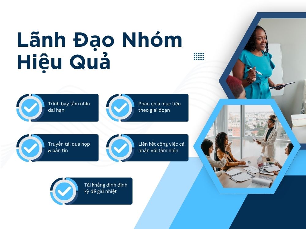 Bài viết giải thích cách lãnh đạo nhóm thành công bằng việc xác định rõ tầm nhìn và mục tiêu chung, giúp từng thành viên hiểu được hướng đi dài hạn. Người lãnh đạo cần duy trì giao tiếp minh bạch, khuyến khích phản hồi hai chiều và sẵn sàng lắng nghe ý kiến, góp phần xây dựng niềm tin. Phân công công việc hợp lý dựa vào năng lực và sở trường của mỗi cá nhân, đồng thời sử dụng công cụ quản lý tiến độ để đảm bảo mọi thứ đi đúng hướng. Việc lắng nghe tích cực, quan tâm đến khó khăn, nhu cầu của nhân viên sẽ giúp họ cảm thấy được hỗ trợ và phát huy tối đa khả năng. Cuối cùng, xây dựng văn hóa làm việc tích cực với hoạt động gắn kết và khen thưởng kịp thời sẽ duy trì động lực cho toàn đội.