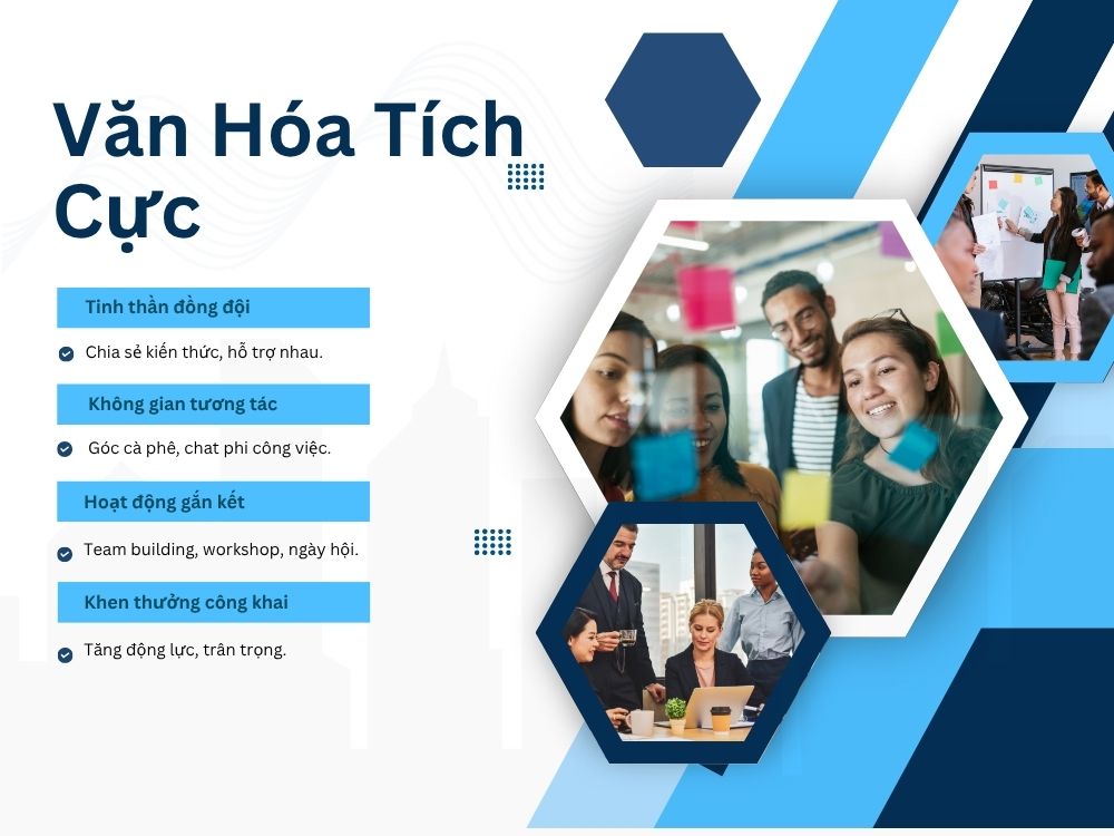 Thể hiện giá trị cốt lõi của tổ chức qua hành động cụ thể: trách nhiệm, tôn trọng, đổi mới và hợp tác để nhân viên cảm nhận được văn hóa sống động, đáng tự hào.