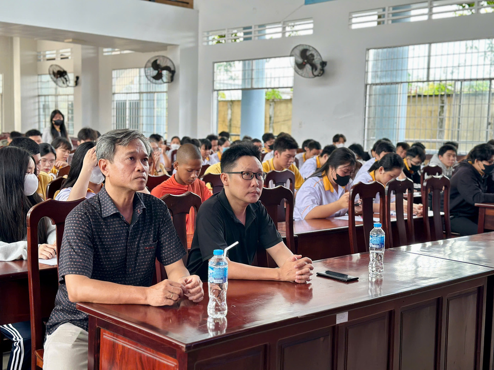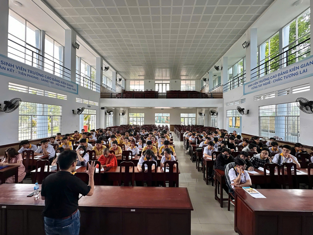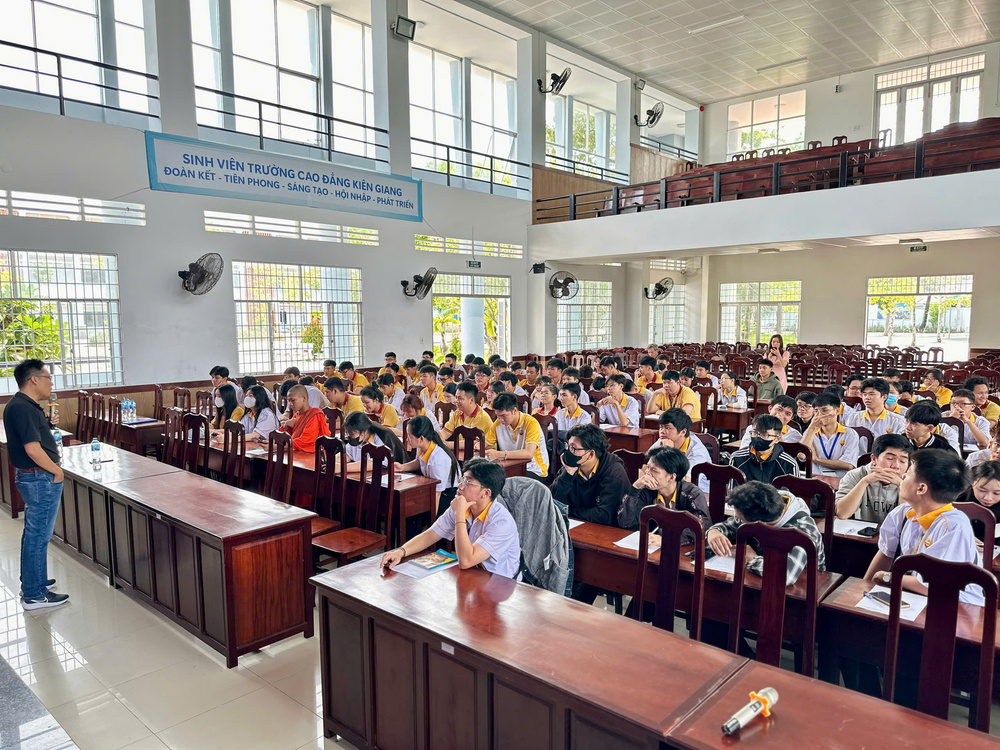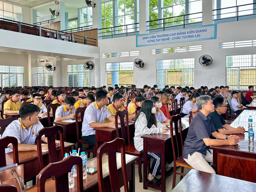 Sinh viên Trường Cao Đẳng Kiên Giang lắng nghe về khó khăn trong giai đoạn thành lập của Hiền Nhân Group