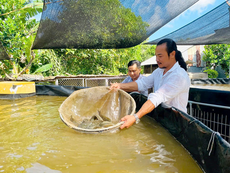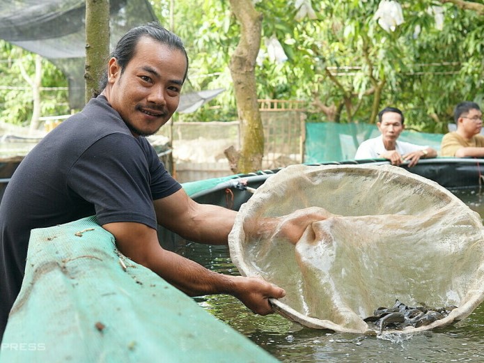 Hơn 10 năm bôn ba, làm qua nhiều công việc ở hơn 5 quốc gia, năm 2020, anh Tâm trở về quê. Vốn xuất thân từ gia đình nông dân, gắn bó với sông nước, anh Tâm nhận thấy nguồn cá ngoài tự nhiên, nhất là những loài cá đặc sản của sông Mê Kông ngày càng cạn kiệt, trong đó có cá heo đuôi đỏ và cá chạch lấu. Hiện nay, 2 loài cá này được thị trường ưa chuộng, giá trị kinh tế rất cao nên anh Tâm nảy sinh ý tưởng nuôi kết hợp cá chạch lấu và cá heo đuôi đỏ ngay trong vườn xoài rộng 4.000m2 của gia đình.