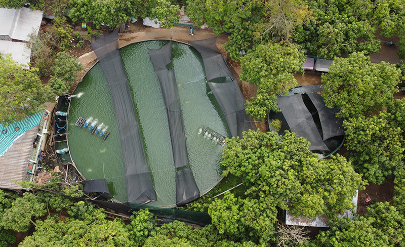 Trên mảnh vườn rộng 4000 m2 đang trồng xoài, anh Tâm quyết định kết hợp nuôi thêm cá chạch lấu. Anh lên ý tưởng dùng ao nổi để nuôi cá, toàn bộ ao nuôi được anh sử dụng bằng bạt nhựa dày, có khả năng chống thấm nước và không gây tổn thương cho cá. Bên trong ao sử dụng thêm hệ thống quạt nước để tạo dòng chảy và tăng lượng oxy hoà tan trong nước, ao có dung tích khoảng 8000 m3 nước.
