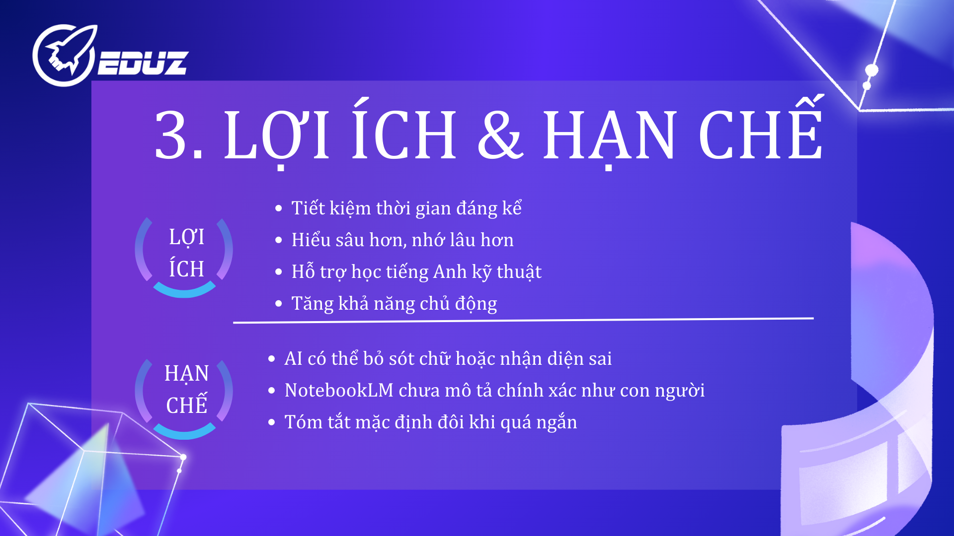 Tiết kiệm thời gian đáng kể: Giảm 50–60% thời gian xử lý tài liệu, đặc biệt hữu ích khi ôn thi.