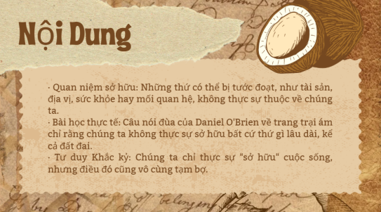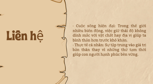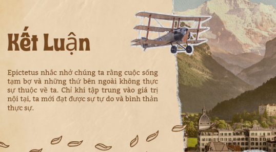 Epictetus nhắc nhở chúng ta rằng cuộc sống tạm bợ và những thứ bên ngoài không thực sự thuộc về ta. Chỉ khi tập trung vào giá trị nội tại, ta mới đạt được sự tự do và bình thản thực sự.