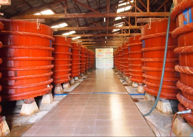 - Hỗn hợp cá muối được bốc dỡ từ hầm tàu sẽ chuyển vào thùng chượp gỗ bời lời được vệ sinh kỹ lưỡng để giữ mùi vị và màu sắc của nước mắm nguyên bản. Cá được ủ trung bình từ 12 – 15 tháng ở điều kiện tự nhiên, không dùng bất kỳ chất xúc tác nào để có thể cho ra những giọt nước mắm tròn vị.