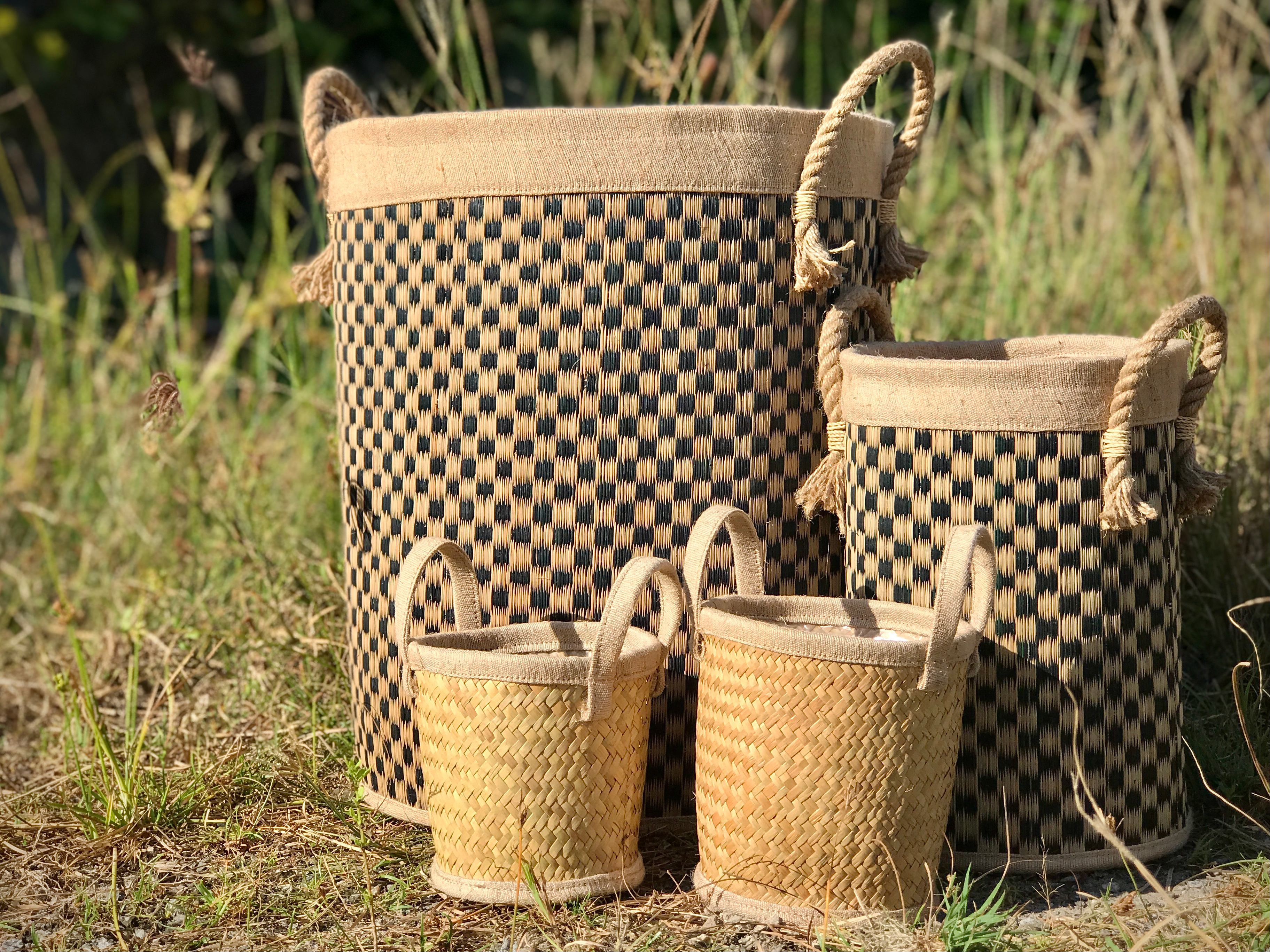 Sọt bàng là sản phẩm được làm thủ công 100% bởi đôi tay lành nghề của các nghệ nhân chân chính, chất liệu được sản dụng hoàn toàn thân thiện với môi trường là cỏ bàng Phú Mỹ và chiếu uzu. Các chi tiết của sản được đan rất chắc chắn và chất lượng, được điểm tô thêm các đường viền vải màu nâu nhẹ càng tôn thêm được nét tau nhã cho sọt. Việc kết hợp đan xen kẻ nâu và đen làm sản phẩm toát nên vẻ trẻ trung, sang trọng hơn. Bên ngoài sọt được đan bằng chất liệu chiếu, giúp sản phẩm bền bỉ hơn. Rất xứng đáng để ai ai cũng nên mua về dùng thử, ủng hộ hàng Việt Nam, nâng tầm đồ Việt.