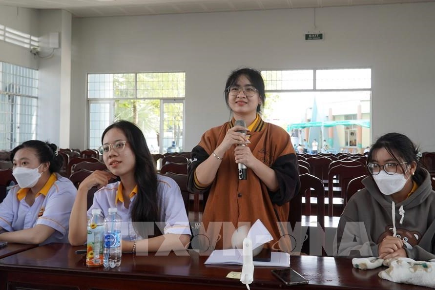 Sinh viên trường Cao đẳng Kiên Giang đặt câu hỏi cho ban tổ chức. Ảnh: Văn Sĩ - TTXVN