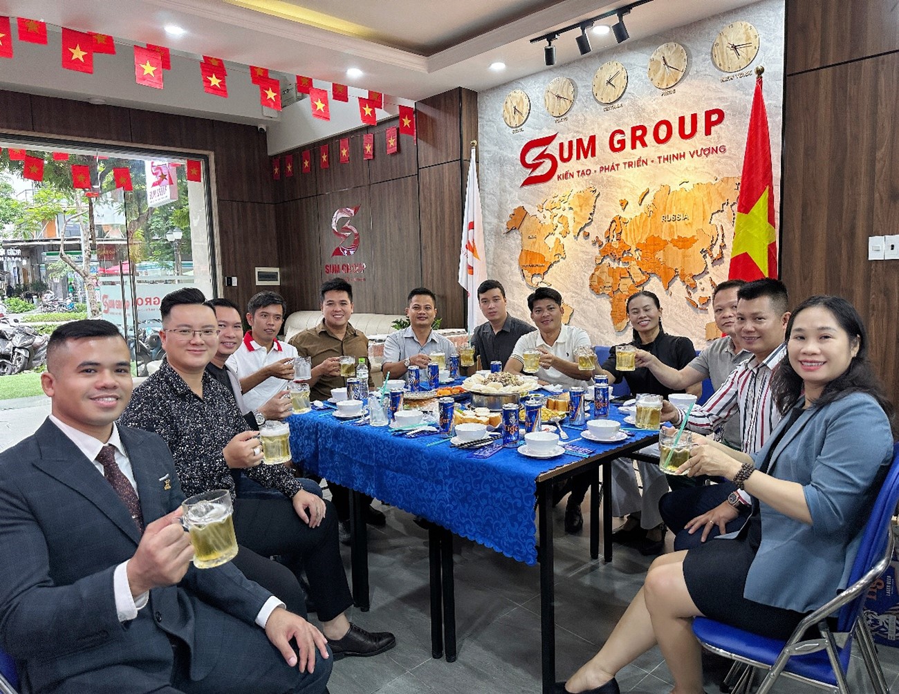 Khép lại chương trình, toàn thể thành viên Sum Group đã cùng nhau quây quần trong bữa tiệc sum họp ấm cúng. Đây là dịp để mọi người có thể thoải mái trò chuyện, chia sẻ niềm vui, giúp gắn kết thêm tinh thần tập thể, tạo sự gắn bó và cùng nhau nhìn về chặng đường phía trước.