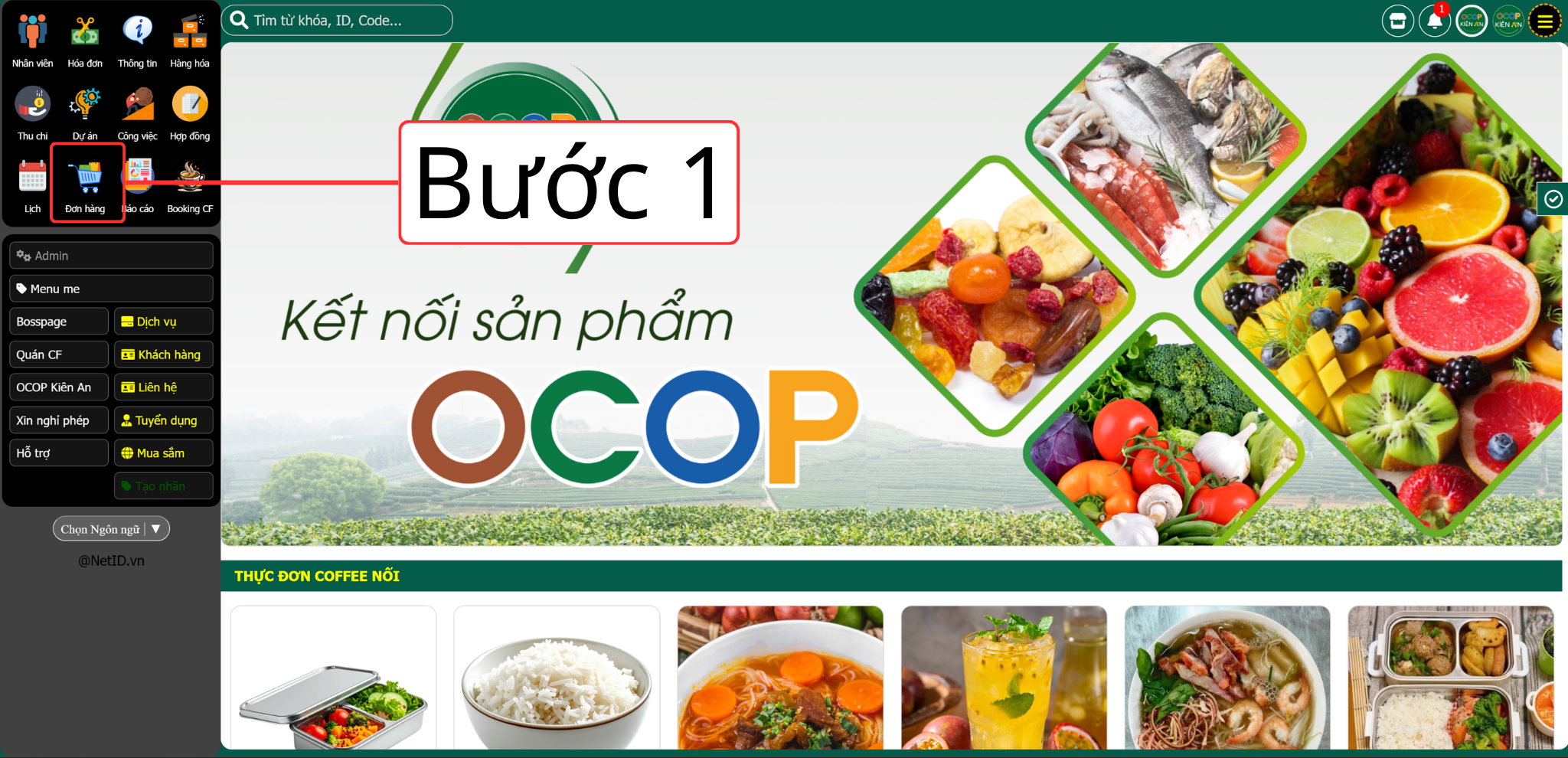 - Bước 1: Sau khi đã truy cập vào trang quản lý, chọn menu Đơn hàng